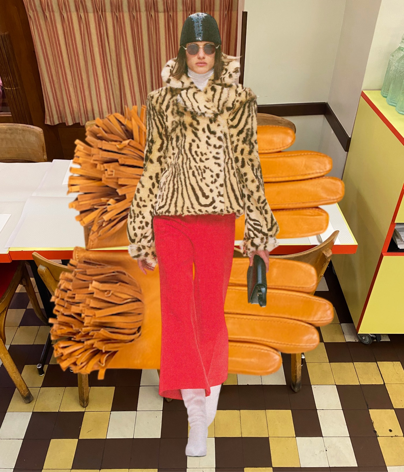 His latest collection radiates a warmth that only clothes meant to live a life in can emanate – so effortlessly, so honestly. Everything clicks, from the Diane Keaton–esque sporty elegance to the image direction meticulously shaped by Rider’s team. What I appreciate most about the collection is that it conveys precisely the same great feeling as the joint work of Philo and Rider more than a decade ago: the comfort of a postcard-printed blanket carried like a stole; the perfectly weighted crêpe used for a poncho-like cloak (remember Céline Spring–Summer 2013? The echoes of those eternally chic black dresses are right here); animal-printed coats that are just a bit too big, as if lifted straight from your grandmother’s wardrobe; dresses and suits with subtly tweaked proportions, making the case that chic often lies in the slightly odd detail that transforms an otherwise perfectly fine garment.