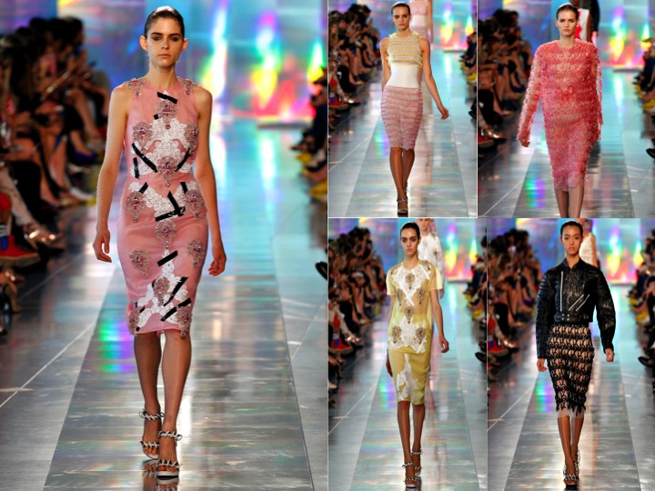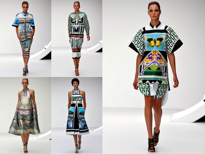 Burberry Prorsum- A real change in the label. Usually everone thought about Burberry as sport brand, but after this and last season, it got the status of chic! The neon dresses, bags, shoes and jackets are really hot this summer and those peplums still are at the top!Vivienne Westwood Red Label- as always unique and crazy, Vivienne didn’t disapoint for this summer. Florals, elegant but super ordinary dress are the must haves from this collection.Mary Katrantzou collection was inspired with Greece postcards, wildlife and a big pallette of blue colour. However not so spectacular as last season, it is still amazing and gives as the 3D Print Effect.Peter Pilotto’s classical look didn’t really change, however we can see some beautiful floral prints, orange colour and the new shade of blue. The collection was in reality like a collage! Different things with other things. I love it!My favourite of all- Christopher Kane