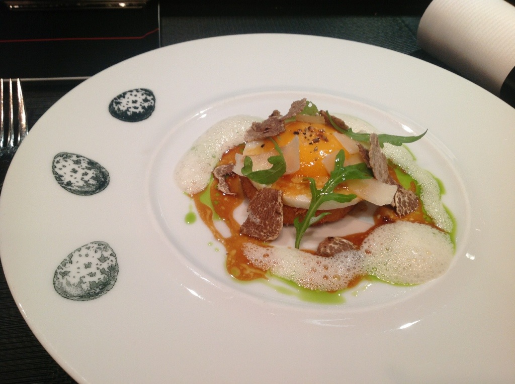 For dinner I had L’Atelier Etoile on Champs Elysees. It was super! I loved it! I ordered four small degustative dishes: chicken with white truffles, black cod, scallops in pumpkin soup, burger with foie gras. Here are photos: PS This restaurant is the most trendy one in Paris and you sit behind a big bar.