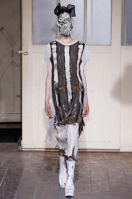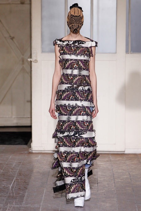 The couture line of Margiela- Artinasal, had a asian fusion this season. It was all very tailored and full of ornaments. The beginning of the show was like if somebody put withe paint on black dress. Then the Indian influences and a la sari’s came. It was beautiful.
