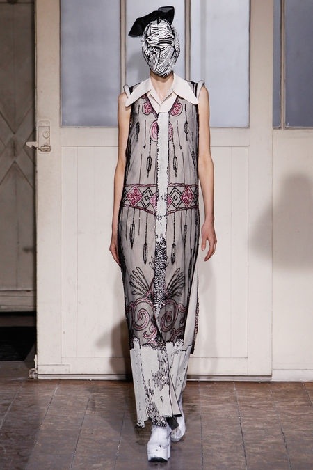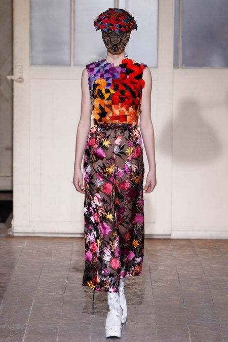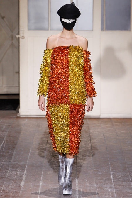 After the youth energy came. Elegant dresses mixed with a great dose of colour? Only at Maison Martin Margiela. That was my favourite part of the show. And the face masks reminded me of the Trompe L’Oile print that was shown on the HM collaboration on the blouses.