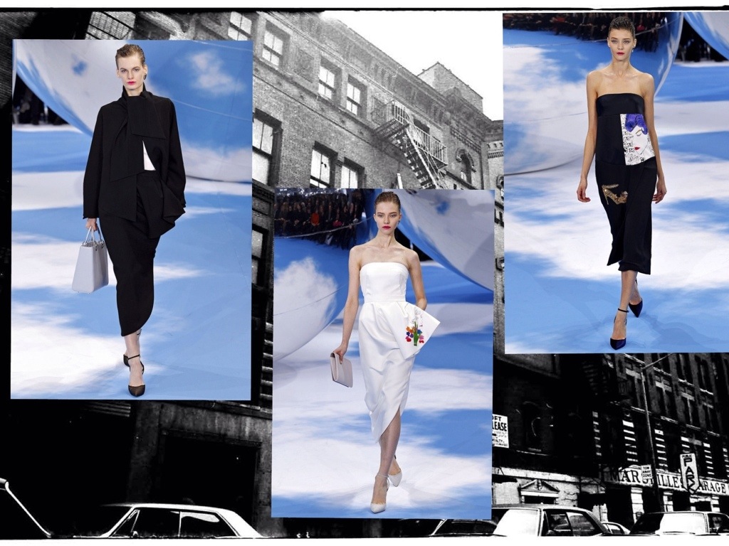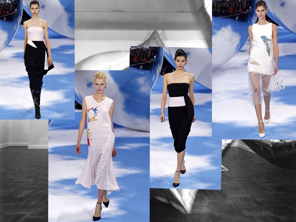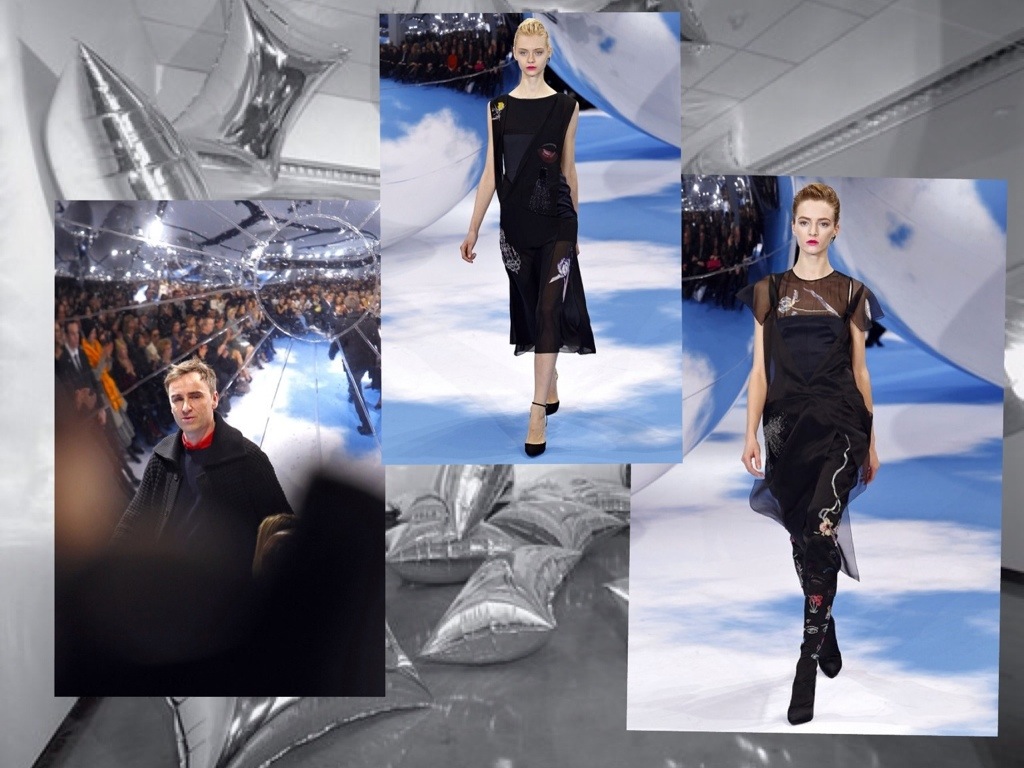 It’s the fifth collection by Raf Simons for Dior so far! And I’m saying it fifth time- Raf Simons, you are a new era’s fashion genius! This season, Raf was totally inspired with Dior New Look and Factory of Andy Warhol. The setting was wonderful- the silver clouds that were one of the biggest Warhol’s installation ever. The collection began with a classical remastered Dior new look in black and white colour. Then some amazing embroiderry came that showed women faces, classic pigalle pumps, flowers… And all in very refreshing colours!