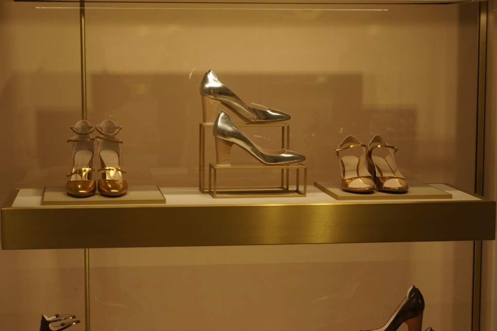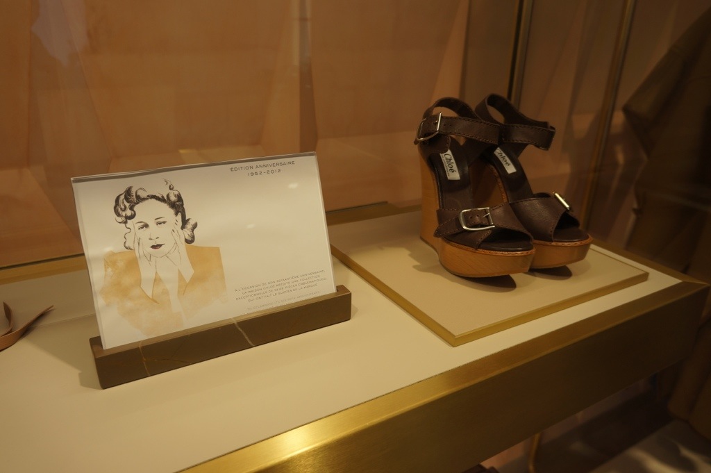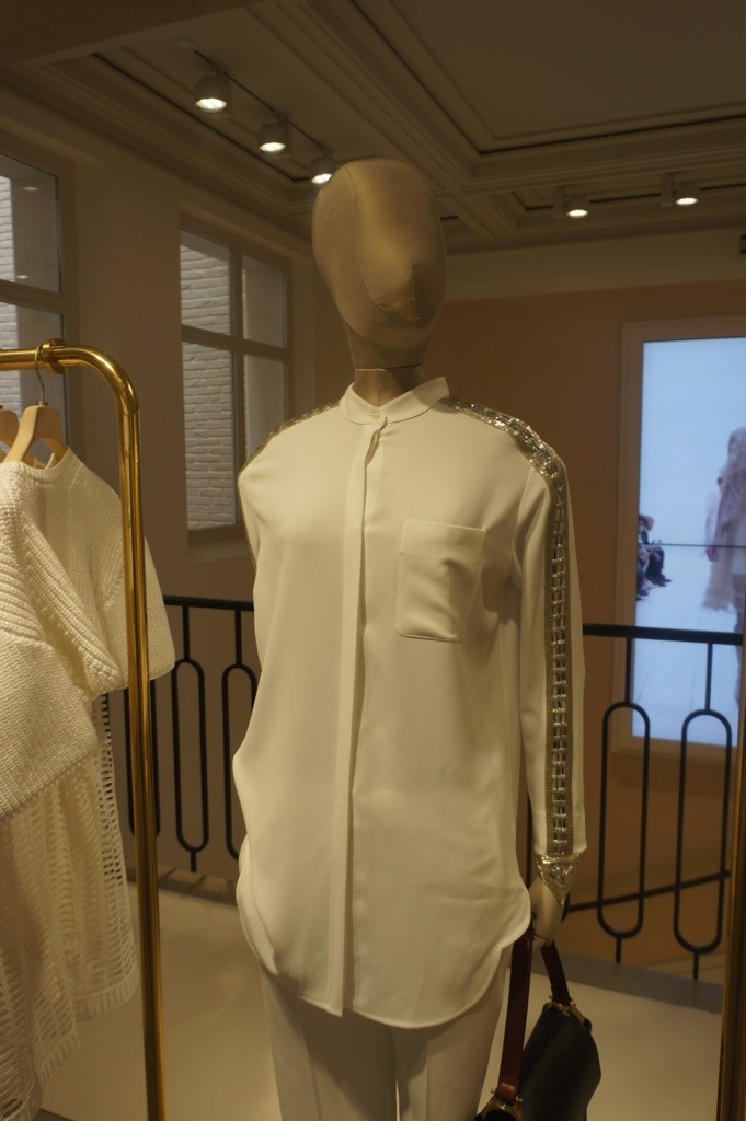 What came into my eye was the flash from the past dresses, shirts and trousers with jeweled arrows on sides that were designed in past by Lagerfeld and the metallic coloured shoes on the first floor. But much more things was there- for example two classical Chloe bags revisted- one exclusively for the Saint Honore edition and one… For the Mandarin Oriental Hotel!
