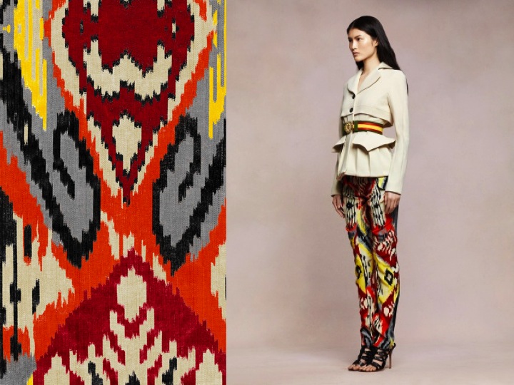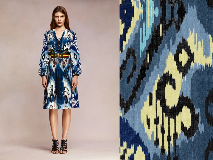 Resort 2013– Altuzarra explored culture of nomadic people, trekking into the heart of African Safari. The print that are used on the skirts, as he said, are inspired by Massai tribes. The colours were left as they are in reality- pigments of curulean blue, verillon red.