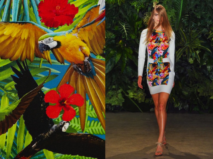 SS 2012– Joseph interprated the classic Hawaiian shirt and hulla skirt, and made it cool and very New York. The prints “contained” hibiscus flowers, parrots, liles and hyper strong colours. This paradise is very close to heart of designer because when he was a child he remembers the bird watching in California. And this is my favourite print of all!