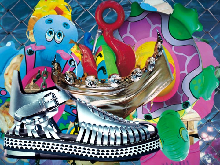 The SS14 Fashion Month recently ended, so now the thing that feels right is to filter everything from every show- from skirts to bags, from sunglasses to socks. While you can see like most of accessesories from the shows in the web, I thought of a selection of my favourite trend of the season. While the Frieze is happening, the most Artsy list of shoes and backs feel totally in the right place. So just feed your eyes on these masterpieces! And the art I used as backround is Jeff Koons. Of course.