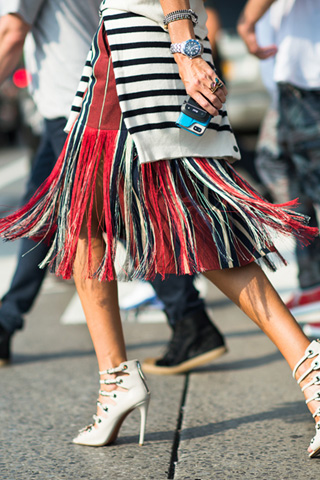 The Fringe is one of the most emerging trends for SS14- they were seen on blouses, bags, dresses, trousers, etc. In other words everywhere. The fringe trend is a bit taken from cowboys and South American cultures- the frenzy pieces of leather that were cut into narrow pieces, for some time were said to be kitsch and cheap looking… but as we can see, everuthing has it’s comebacks. My favourite looks are by Altuzarra, Valentino and Dries Van Noten- that makes it slightly more bohemique!