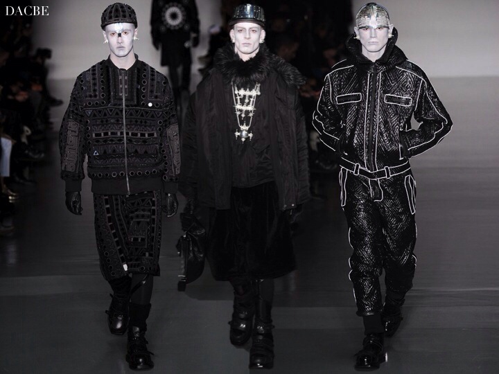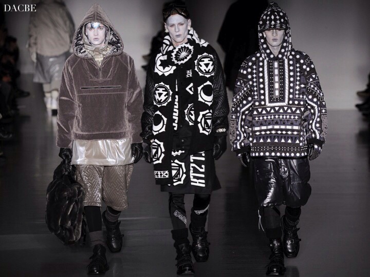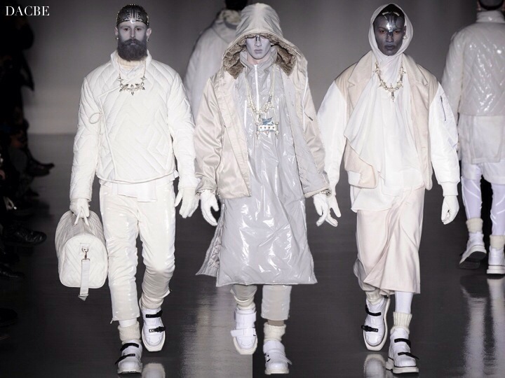 KTZ is the moments hottest London based label. Known for it’s rebellious style, it already has big group of fans who wear only the characteristic black & white “yeezy” hype pieces of sweatshirts and sweatpants. But to date, the AW14 collection was the best. Influenced by oriental culture of Middle East, the totally white collection made a big WOW from the mouths of show guests… The parachute coat, HOLY sweatshirt and all these head pieces look so cool and fresh! And the thought that it’s not all in fussy colours but kept in black & white… KTZ is the most desired luxury menswear label for now (Instagram is buzzing about all the time!) and definitely this collection will be best-seller when it hits the stores.
