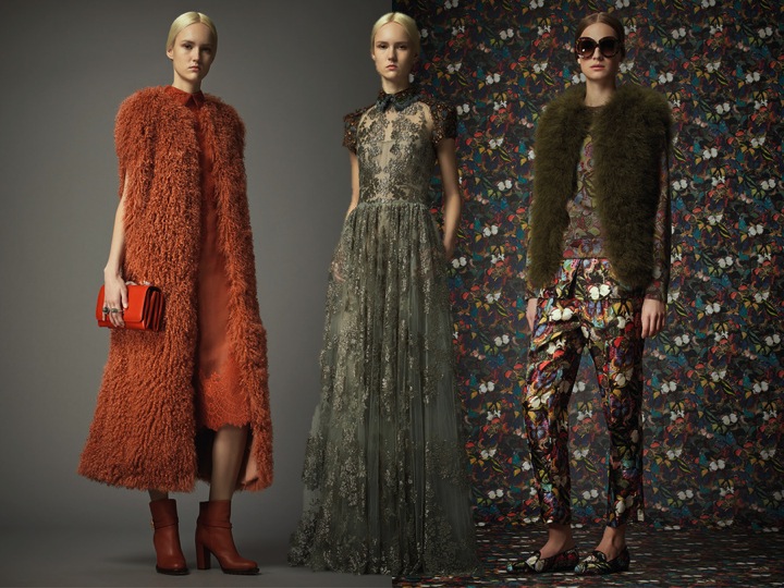 Seriously, this collection is perfect. Valentino outdid itself this season, creating a beautiful, cute collection for pre-fall’14. Filled with butterfly prints, orange shirling, lace gowns, feather details and forest animal theme, this is the ideal look-book for every occasion. Ornamental bags worn with simple boots, appliqued dresses toned by simple, sharp coats. My favourites are the column dress in olive and green, transparent gown with feather embroideries around the collar- this is a fairy-tale of beautiful clothing.