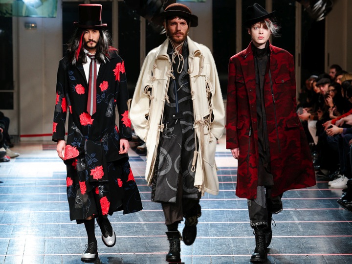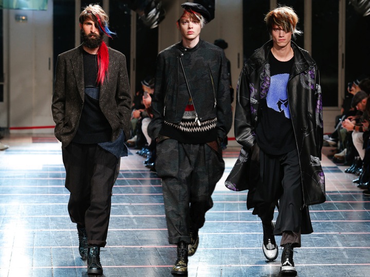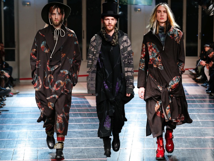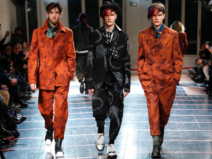 Slide1-kopia 3Yohji Yamamoto made me amazed till now after this unexpected print mash-up. The designer who was the lover of black for a decade, made the most colourful, vibrant and beautiful collection for men to date. The AW14 collection is so amazing! The clothes… so over-sized (pants, coats, shirt, blazers) and full of Parisian’s Le Marais spirit! The prints were slightly oriental- flowers and snakes where all here. But still, the black hats, interesting models with colourful hair and the attitude of the collection made it cool boheme. For now- my favourite collection for AW14.