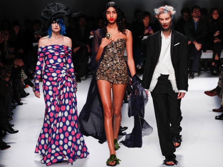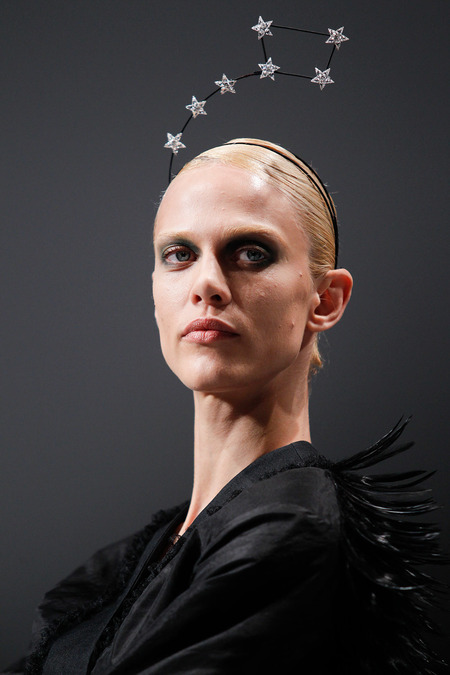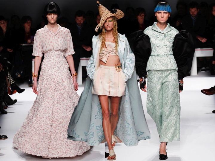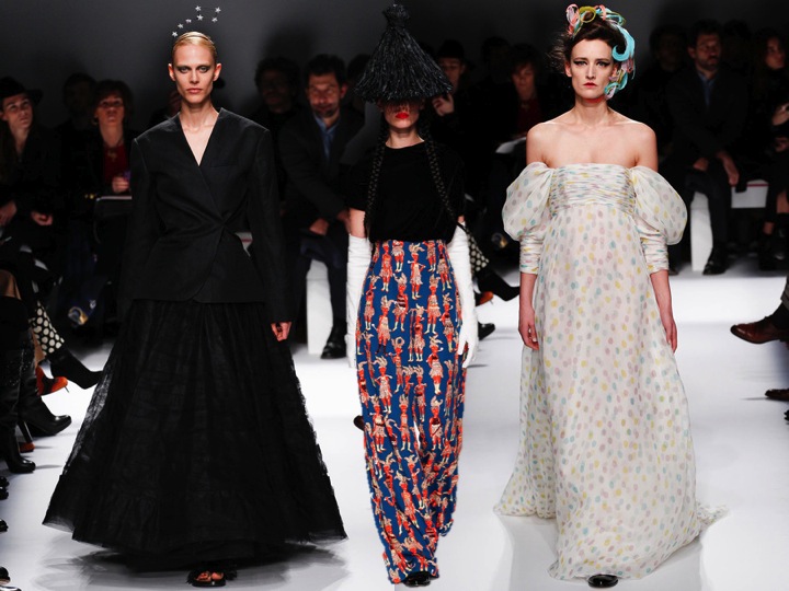 Elsa Schiaparelli created a super succesful couture label known all around the world before World War II. Known for abstractive prints, surrealistic shapes and strange head decorations, Schiaparelli was the IT brand. But, unfortunately fashion industry got so useless within the war, that even beauty of her creations stopped to make people smile. Till now, when on 20th of January of 2014 in Paris the first runway collection was presented, being designed by ex-Rochas designer, Marco Zanini. And it was a circus. The designer made Schiaparelli more a… ready-to-wear collection than Couture. Seriously- white shirt with a black blazer. Nicely decorated gowns. This is all standart for RTW. The collection was between past and now- the same prints and head-covers from Elsa’s time and the modern part, so more minimalistic- done by… well, as I remember Marco wasn’t a fan of minimalism at Rochas. So why the blast of creativity, beauty and fairy-tale couturier dreams were so tamed? Only Stella Tennant in blue hair positevely shocked me…