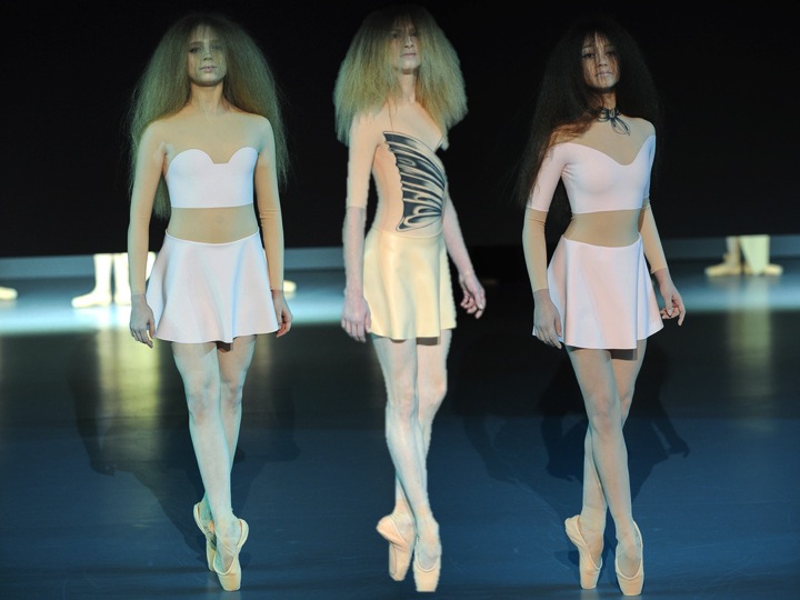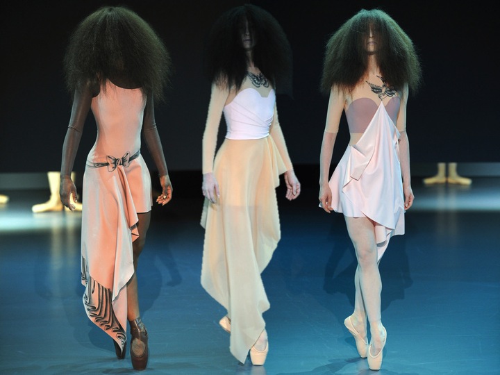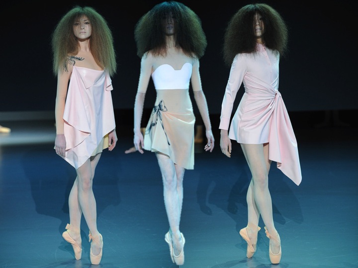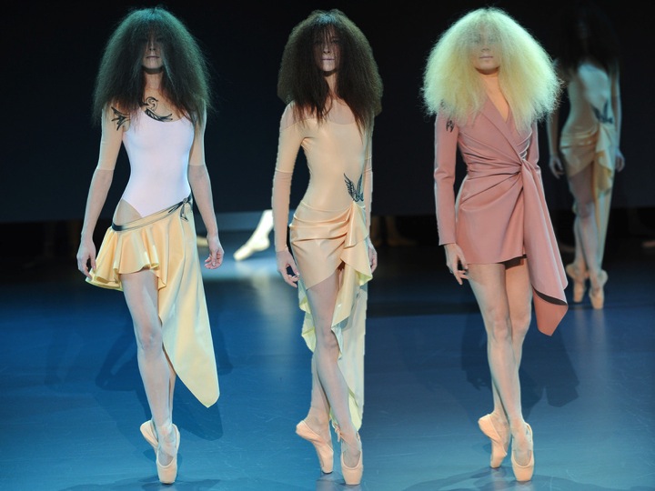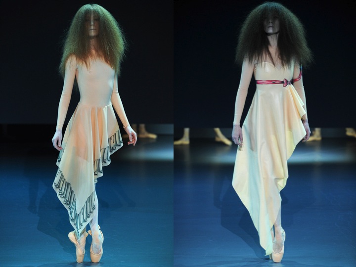 Viktor & Rolf took as to a new, elevated level of Haute Couture. First of all… the models were real ballerinas. Styled as zombie-dolls dancing around the runway, Viktor & Rolf made a great performance (and just remind yourself AW13’s couture done by VF… meditation and zen were the main keywords). The collection was made only of latex- the nude coloured dresses, skirts and bustiers looked a bit sinister and scary… just like the eerie hair that the ballerinas had on! Definitely, if talking of fashion entertainment, Viktor & Rolf as usually marks all the points.