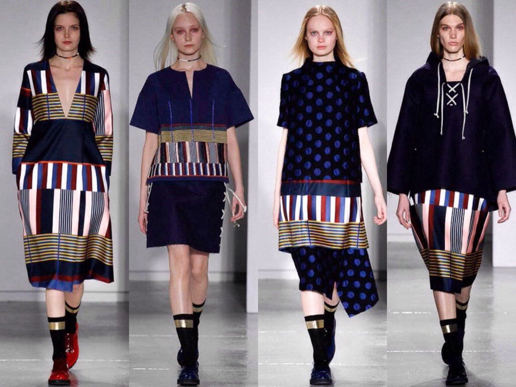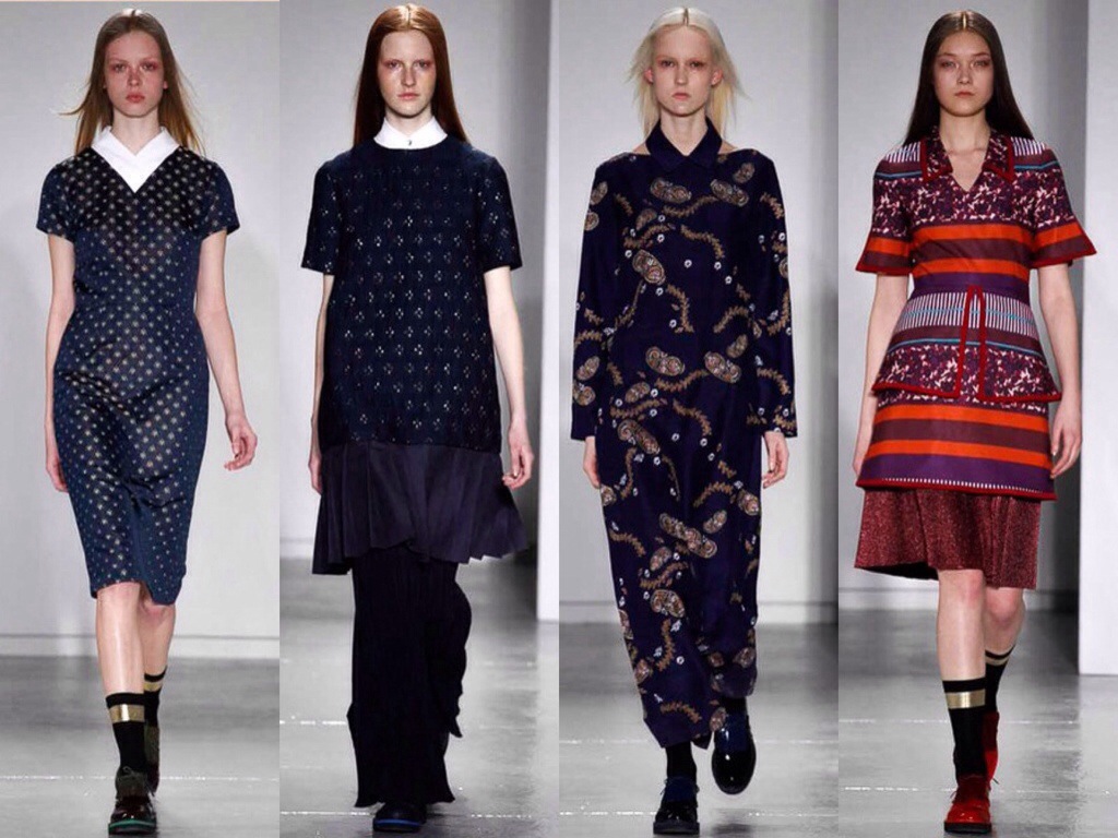 Suno, the adorable New York based label knows how to make best quality clothes so simple and at the same time… Cool. Their AW14 was a mix of New Yorker minimalism and beautiful, Latin American traditional printing & embroidery from the past. Aztecs, Incas, Olmecs- they all found their place in this collection in posture of beautiful tops, trousers and dresses. This collection reminds me a lot of early Celine from 2008, when Phoebe Philo threw the new dimension of over-sized, large navajo styled tunics… That was a real hit back then! I certainly loved the red elements on the last looks- vibrant and radiant at the same time. Surely, Suno is a label to know about…