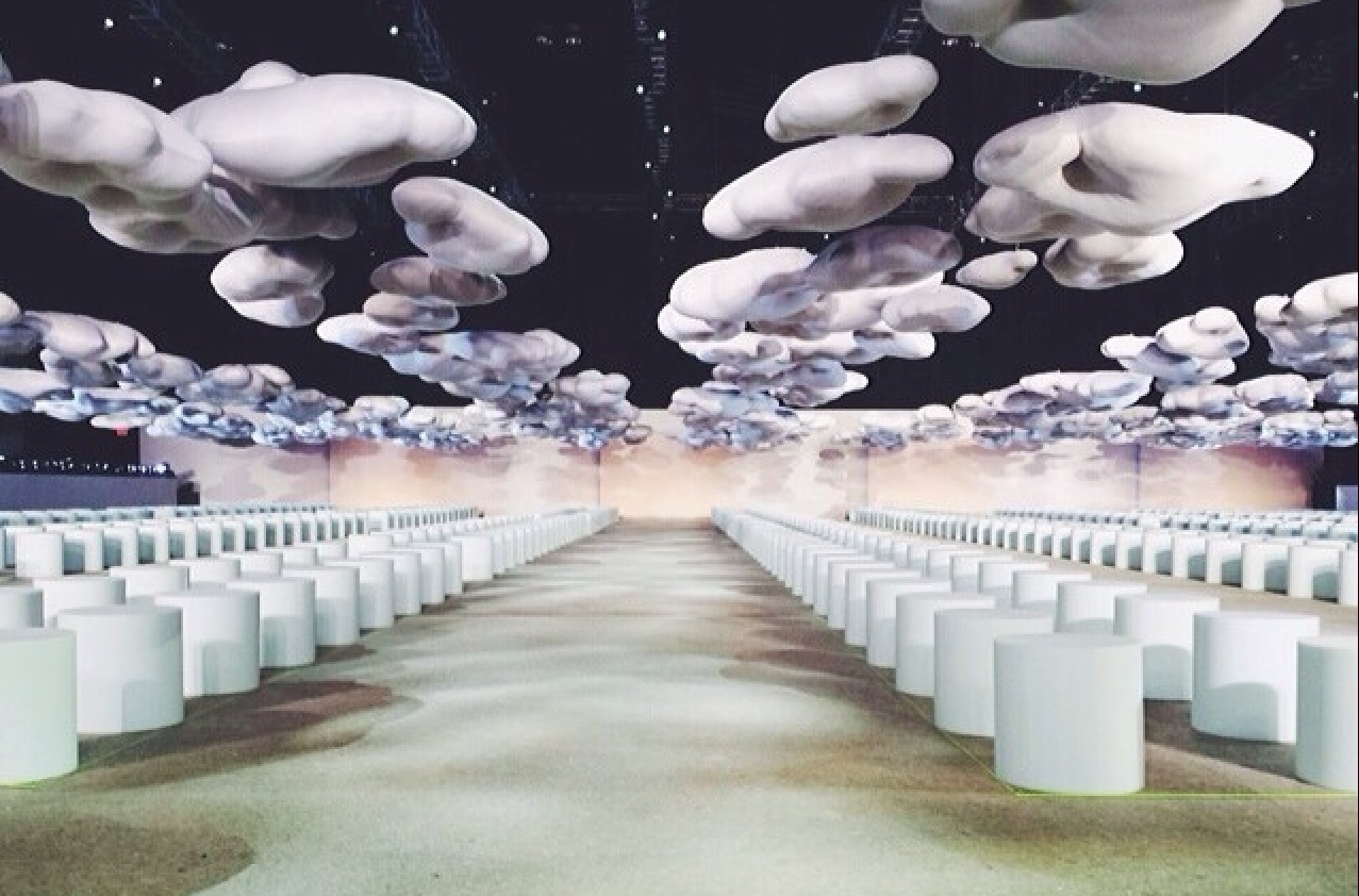 As always for the end of NYFW, Marc Jacobs serves us all something that nobody really thought about. First of all, the setting- clouds that looked like fluffy little lambs, hung over the runway, and the guests sat on mushroom stools. Feels very psychedelic and relaxing. The soundtrack of this final New York collection was the endlessly repeated phrase “Happy Days are here again”.