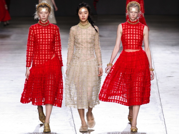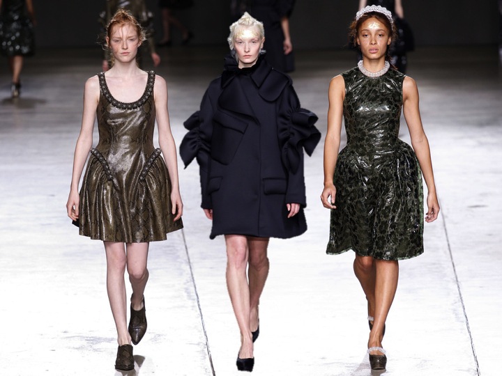 From all London Fashion Week designer, Mrs. Simone Rocha created the most interesting and signature collection for AW14. Noting, that each season she recreates her classical ballerina dress, the AW14 had a royal makeover- Scottish checks; golden elements embroidered on collars and sleeves; mink fur; yellow snake leather on bags and skirts. And all kept in pretty quiet, but ‘strong way, just like all Rocha collections to date. What I loved was her impressive approach to British monarchy- the pieces felt queen-ie, but not to a degree of little, pink princess. Although, some colour doze was applied here (the pink shade is absolutely lovely)! Love it.