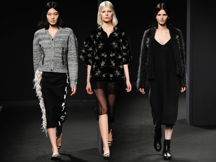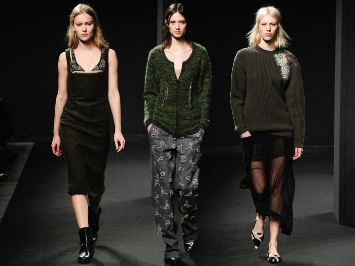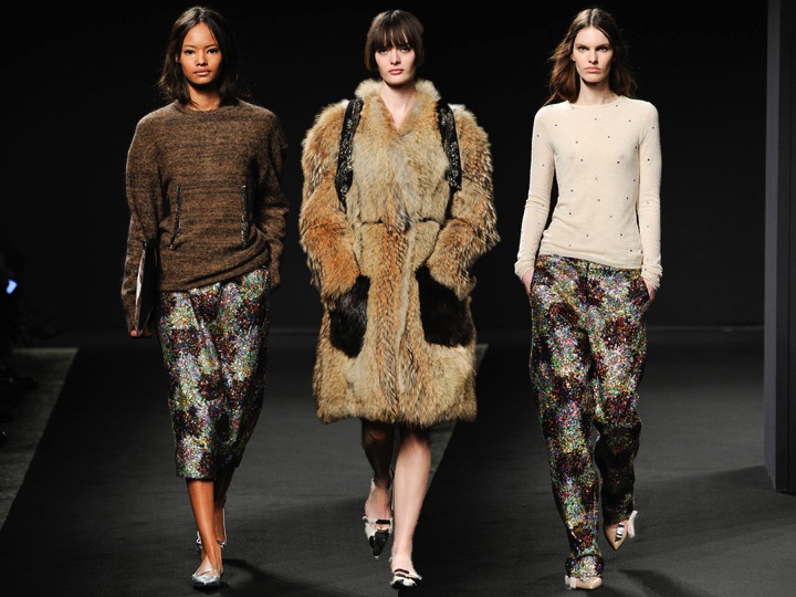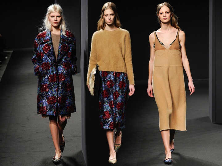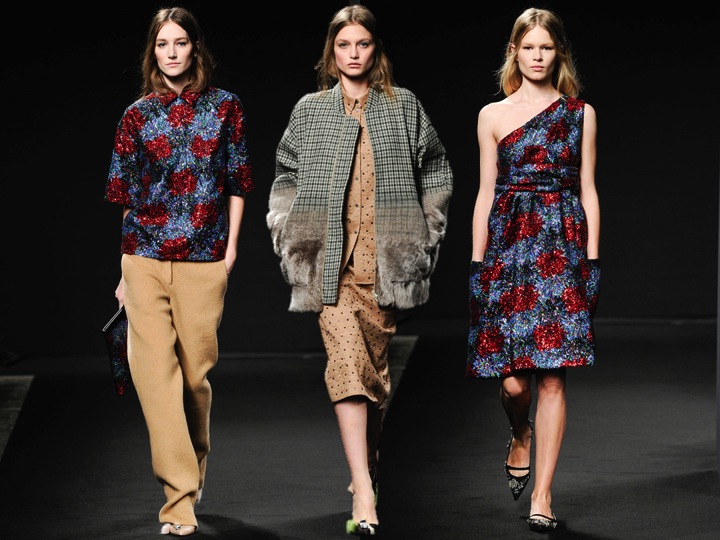 The reason to love Allesandro Dell Acqua’s No.21 collections? Simple answear- they are made to wear. And this is the secret of his AW14 collection, that is fabulous. Full of brocade, tomboy chic, pointy flats and lovely fur, the collection gets my thumbs up. And the perfect look is the one with chunky knitted sweater with a sheer skirt under- it’s very lady-like, but at the same time effortless. More of this type outfits are warmly welcomed on the streets!