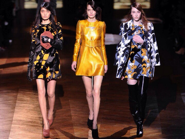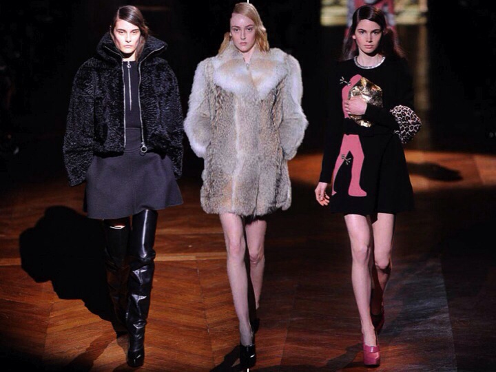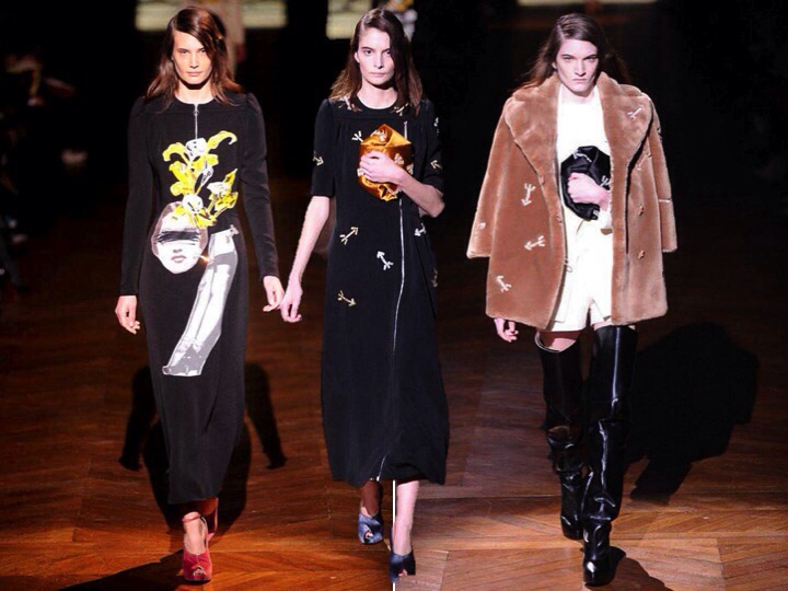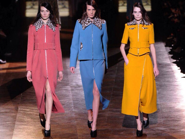 I love that Carven collection! It is so pretty and cute! So Parisienne! The colours of pink, orange and blue look so adorably sexy with this leopard fur on collars… And those surrealistic embroideries on dresses look very mature, but at the same perfect for a Carven femme. I must admit, for few seasons Carven did boring collections, but this time they out-stood their selves. When I see those dresses I here early Vanessa Paradis… “Joe le taxi , Y va pas partout, Y marche pas au soda, Son saxo jaune, Connait toutes les rues par coeur, Tous les p’tits bars, Tous les coins noirs, Et la Seine, Et ses ponts qui brillent “