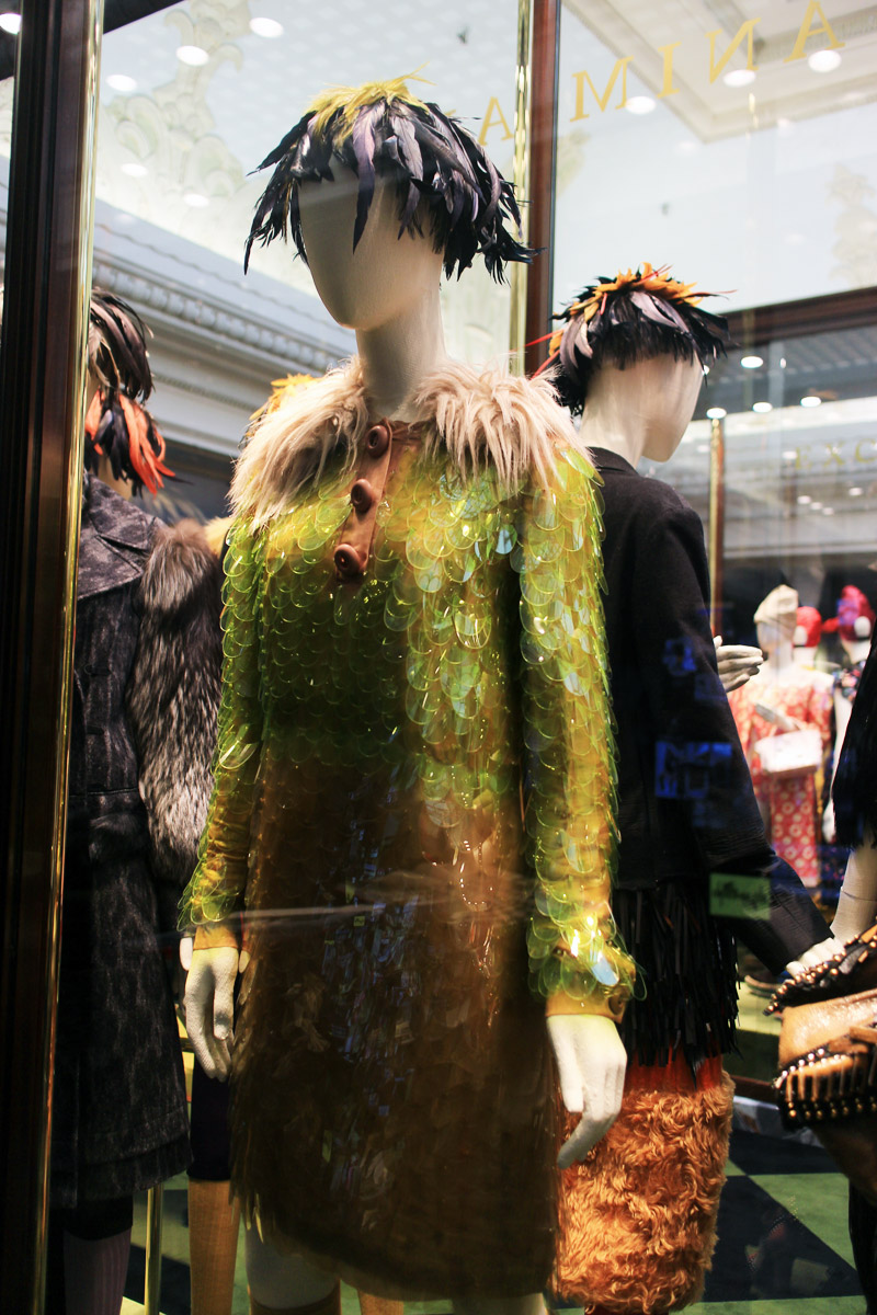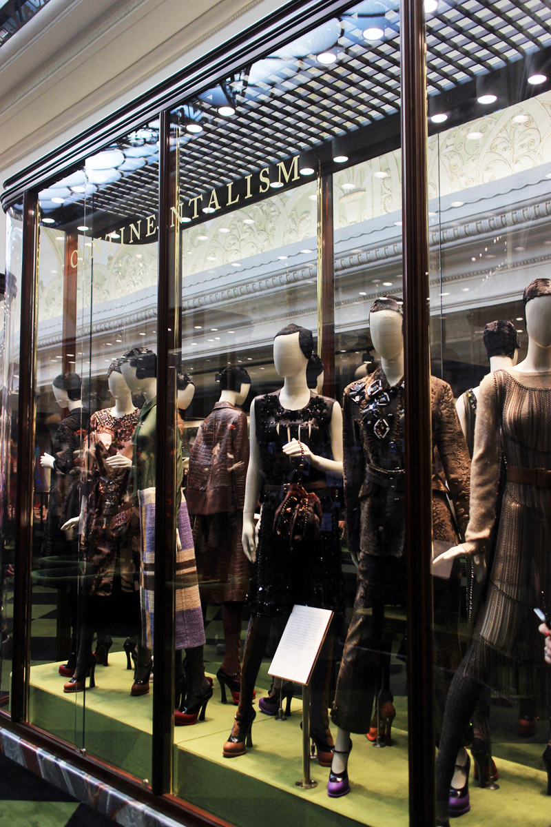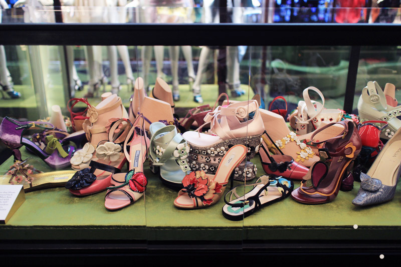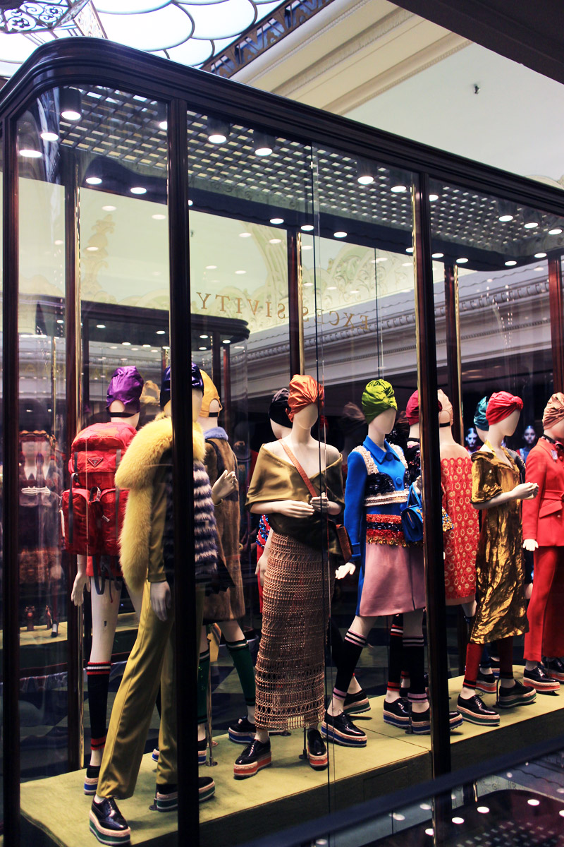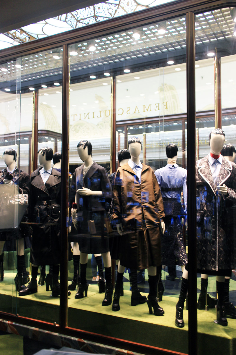 Prada: A cosmos of its own composed of heavenly bodies set in a complex orbit. A universe of contradictions and endless elaborations— noble causes and base temptations— where idealism meets vanity, intelligence meets passion, fashion meets fiction. This is what the PRADAsphere is all about- a huge playground at London’s Harrods, where Miuccia Prada styled each section with her archival (and very new AW14) pieces. The collection that will last till 29th of May is a perfect occasion to remind ourselves the best Prada collections that influenced our sense of fashion and art… the SS10 crystals. The AW13 seductive checks. The SS13 modern geishas. It’s simply a Miuccia Prada wonderland (even all bags and shoes are present here in their own “eco-systems”)! The photos from the exhibition are by Susie Lau.