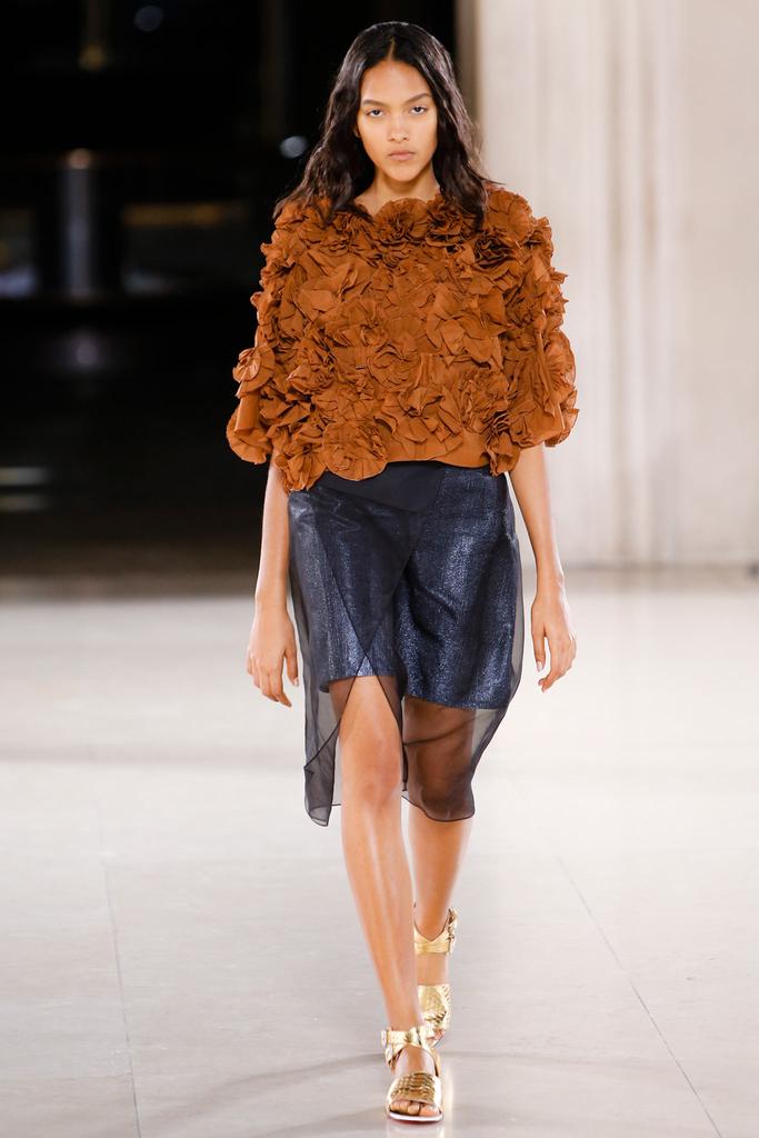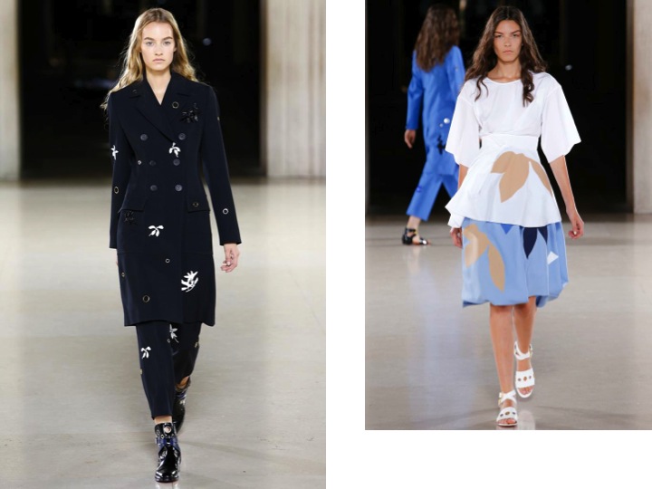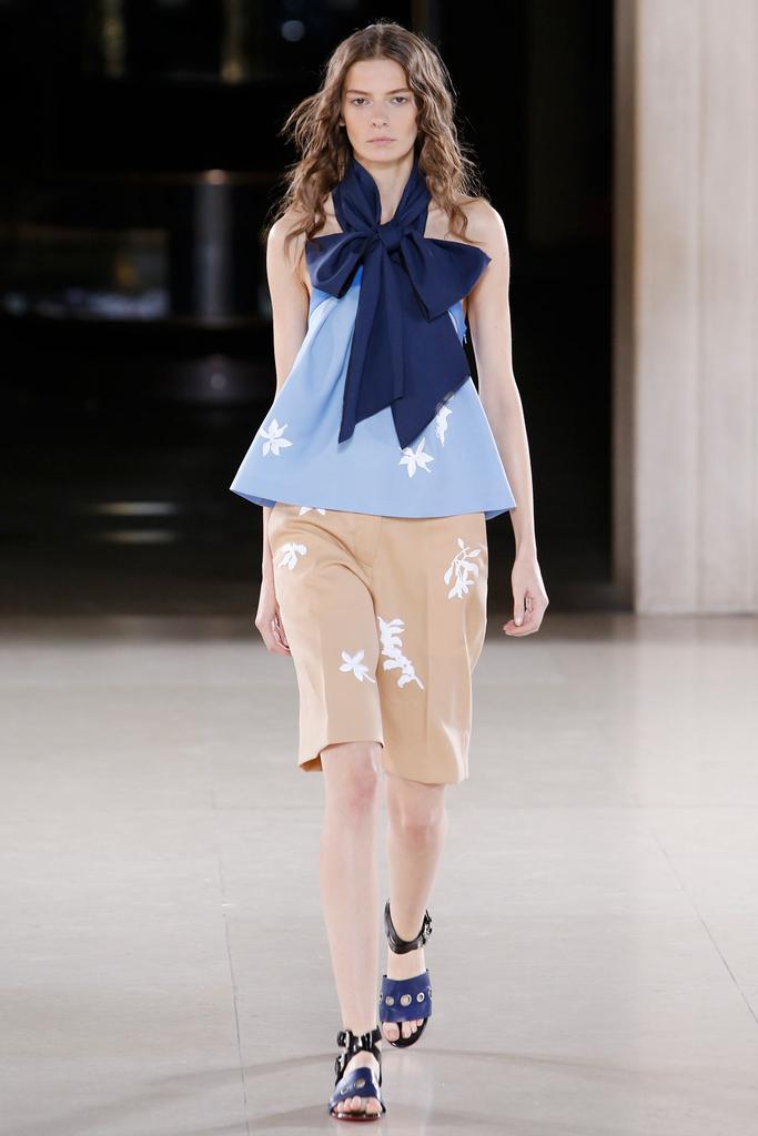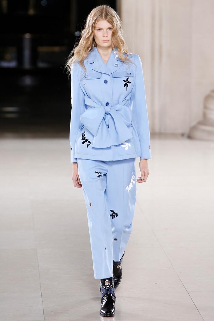 I like that, Jonathan! This season is possibly the most strong to date for this British designer. In his files, he’d come across a piece of cotton voile from a Japanese mill as light—and pliable—as paper. The possibility of combining the two inspired a striking effect: paper saturated with blue, impressed on fabric, like artisanal color-blocking. “It’s about process,” master printmaker Saunders explained. He wanted lightness. He got it.The show was really about beautiful lightness, ruffles and ribbons. This fragile yet very dynamic collection had also a beautiful shade of blue in it at the end. It felt elusive and fresh. And, in comparison with last season, it was much better!