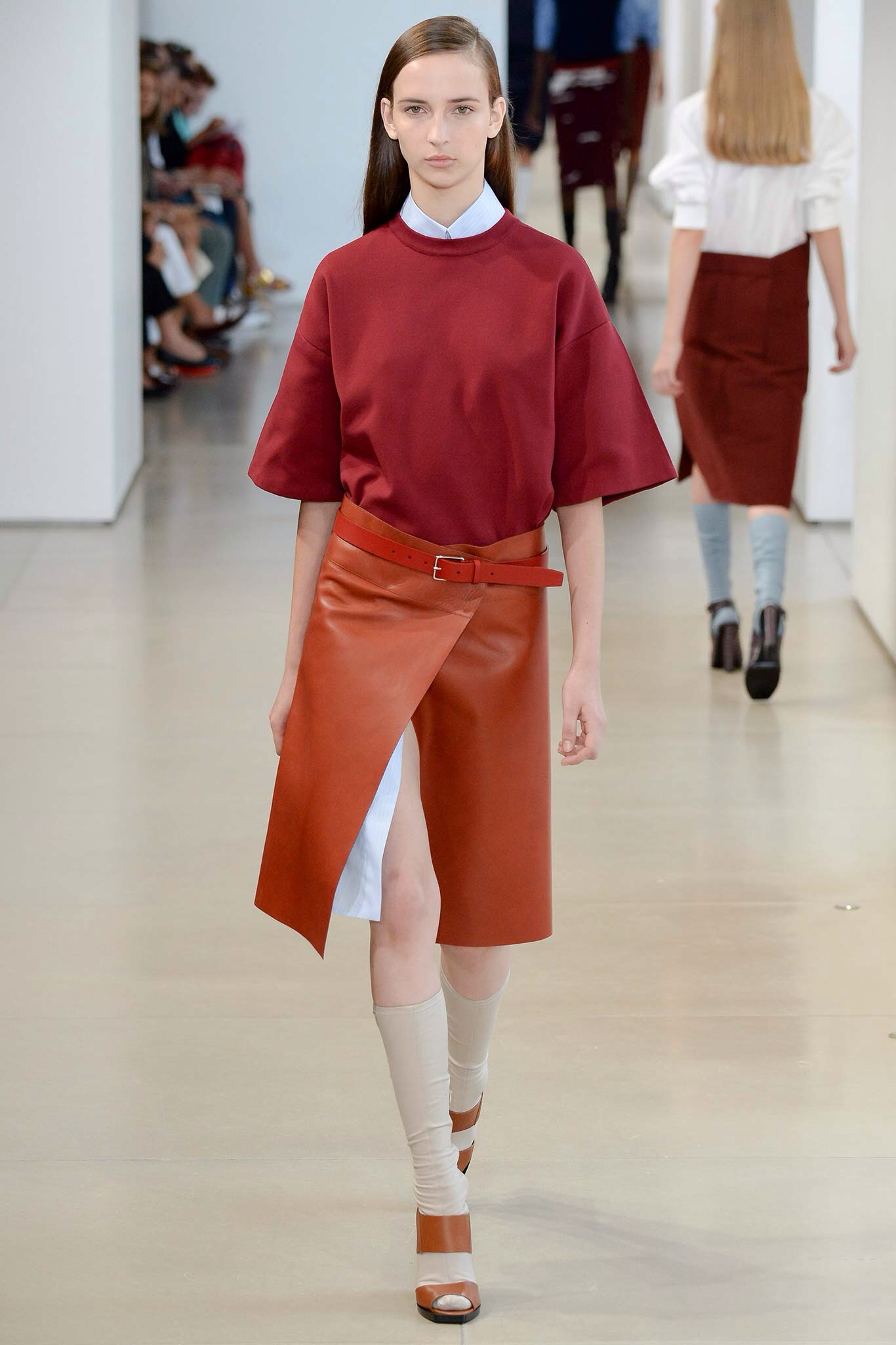 Rodolfo Paglialunga, the ex-Vionnet designer, is now the creative director of the minimalistic brand Jil Sander. This quiet designer is now on the place of Jil Sander, who left her house a year ago, and this is his first show… and it’s very German. By saying German, I mean it’s super clean, super minimal and super effortless. But it’s totally not that, what Raf Simons used to show year ago (when Sander AGAIN left her label). For summer, Rodolfo used a lot of burgundy, blue and black. We’ve got some classical sweaters and shirts… In other words, yawn. But still, these clothes are very Jil Sander.