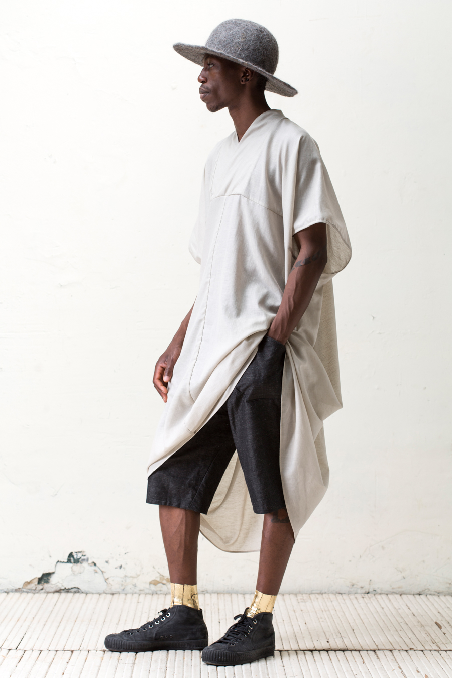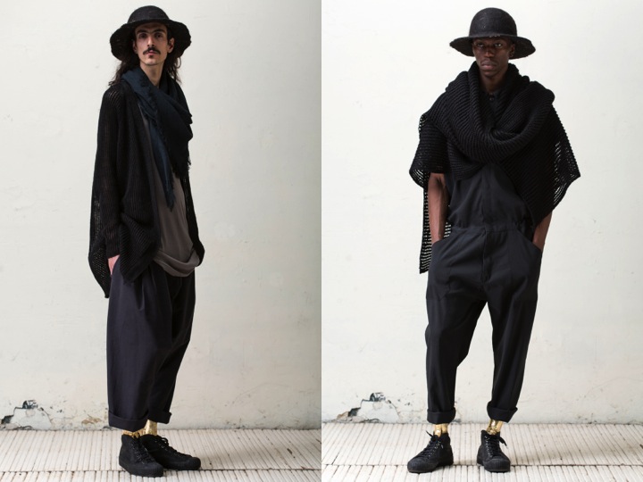 Born and raised in Antwerp, Jan-Jan Van Essche menswear brand blends ethnic tradition with western characteristics- knitted ponchos, wool hats and loose attitude. Together with his partner Piëtro Celestina, whom Jan-Jan met during his fashion studies at the Royal Academy of Fine Arts, he runs Atelier Solarshop just a few blocks away from their loft where they live and work.The former solarshop carries Jan-Jan’s pieces and vintage treasures that reflect his style and mood. In Jan-Jan’s latest collection, entitled INITE, he shows his signatures- lazy blazers, pants and non-chalantly worn scarves. Also, we’ve got a quiet, peaceful colour palette perfect for every season. But what strikes you first in his new look-book, are the gold-polished socks which give the all of the outfits a edgy touch. This Antwerp-based guy keeps it close to his own, personal aesthetic and I love it (by the way, his models seem to be perfect for the overall atmosphere of the collection). More on ateliersolarshop.be and janjanvanessche.com