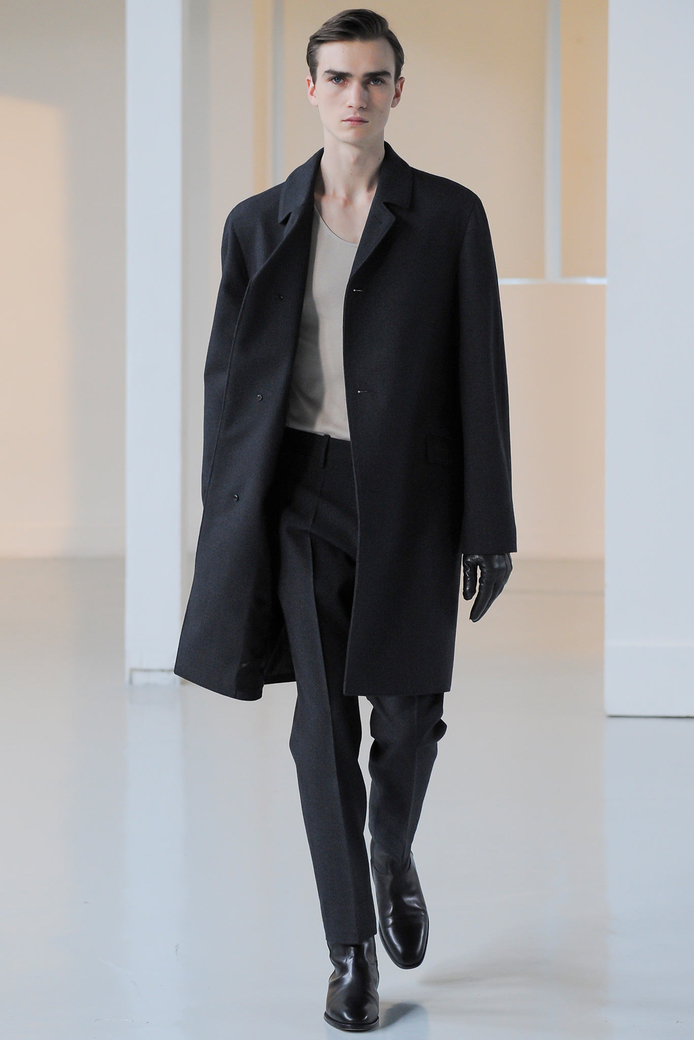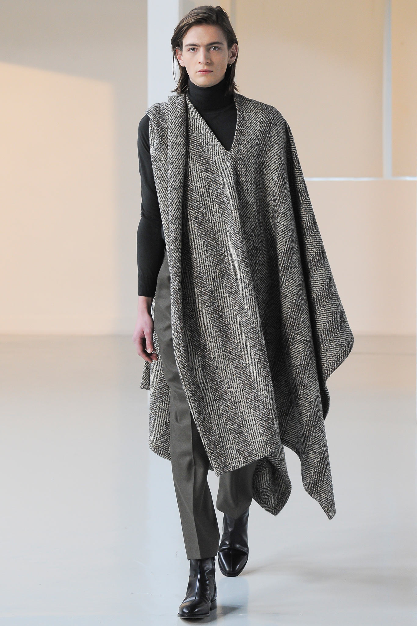 Christophe Lemaire changed the name of his own, eponymous label, into LEMAIRE. What does it mean? He wants it to be even more descreet and less personalized. “We thought it was time to clarify and reboot, to give it a family name which reflects that we are very much a design duo,” he said. Sarah Tran, his partner, added: “It’s also to say that what we do is about teamwork—people working for a name, yes, but a less personified one than before.” In his AW15 collection, the men, as usually, looked steady and ready for daily life. Comfortable parkas, loosely tailored trousers and over-sized capes were mixed with a slight body exposure. Mostly, the models didn’t wear shirts under their casual blazers. “It is always about the idea of showing a man who is steady,” he said. Fall 2015’s articulation of that Mr. Reliable was based on Alexandre, the amorous protagonist played by Jean-Pierre Léaud in La Maman et la Putain.