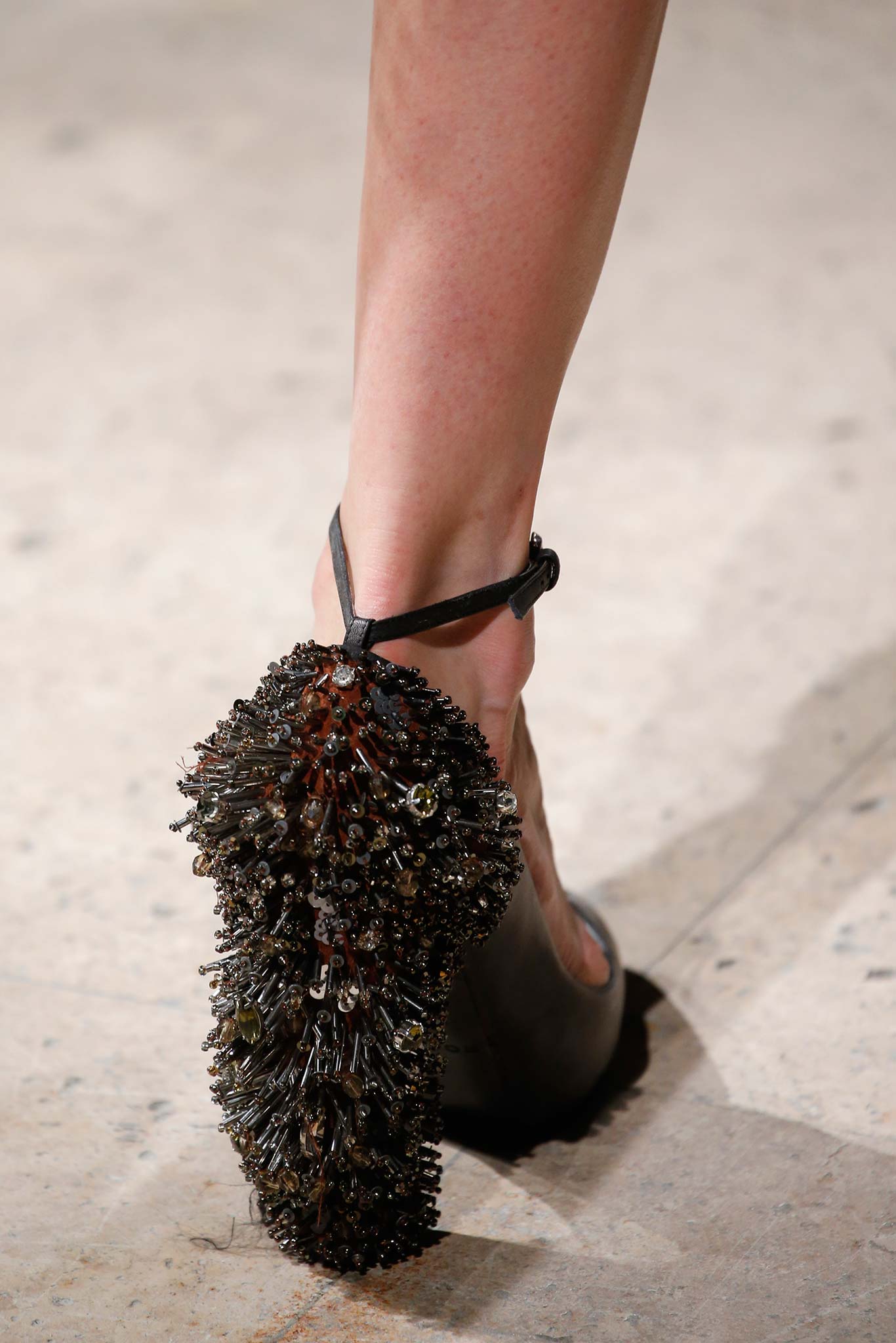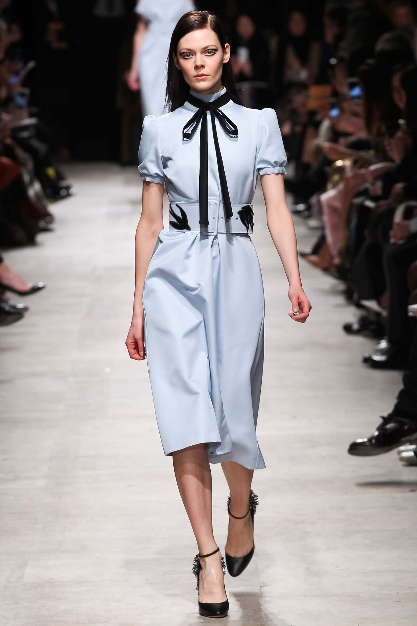 Alessandro Dell’Acqua of No21 makes the legendary Rochas house alive! And his AW15, the third runway collection for this label, is ultra-cool in it’s feminity. As it’s the 90th birthday of the historical Parisian house created and found by Marcel Rochas, the new Italian designer presented a refreshing view on women’s wardrobe. The dresses were lady-like, with ribbons, archive heritage-bird prints and ruffles – but the shoes had punky studs on. And if we contrast that with sheer silk skirts… then the overall result is a bomb. Just like the warm yellow colour which appeared on Maja Salamon and Molly Blair. We can’t wait for more, Alessandro!