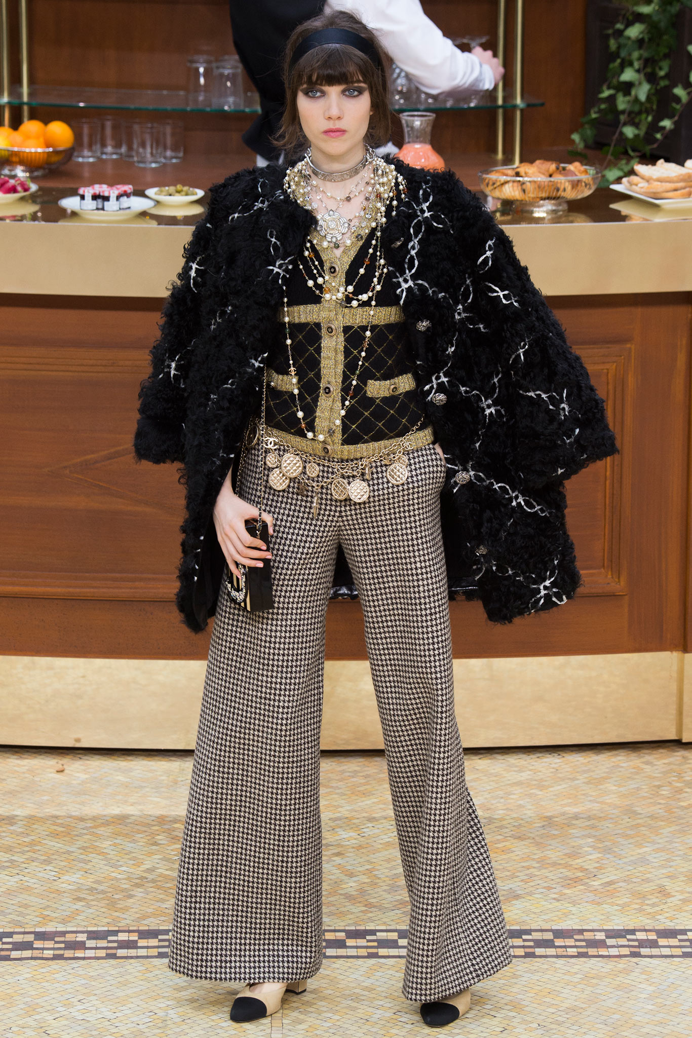 “A vision of France from a stranger who thinks France is not that bad.” Karl Lagerfeld has grown increasingly tired of the cynical negativity, much of it from the French themselves. So, creating a Brasserie Gabrielle as a venue for Chanel’s AW15 show was the right idea – what cheers up a French as much as a good lunch with red wine? Well, only a new Chanel bag. But the space was too vast to communicate the charm of a real brasserie in Paris, even those as big as Balzar which is Lagerfeld’s favourite. Actually, it’s the first time when the usual, fabulously great concept for a Chanel show stumbled. But still, it felt nice.
