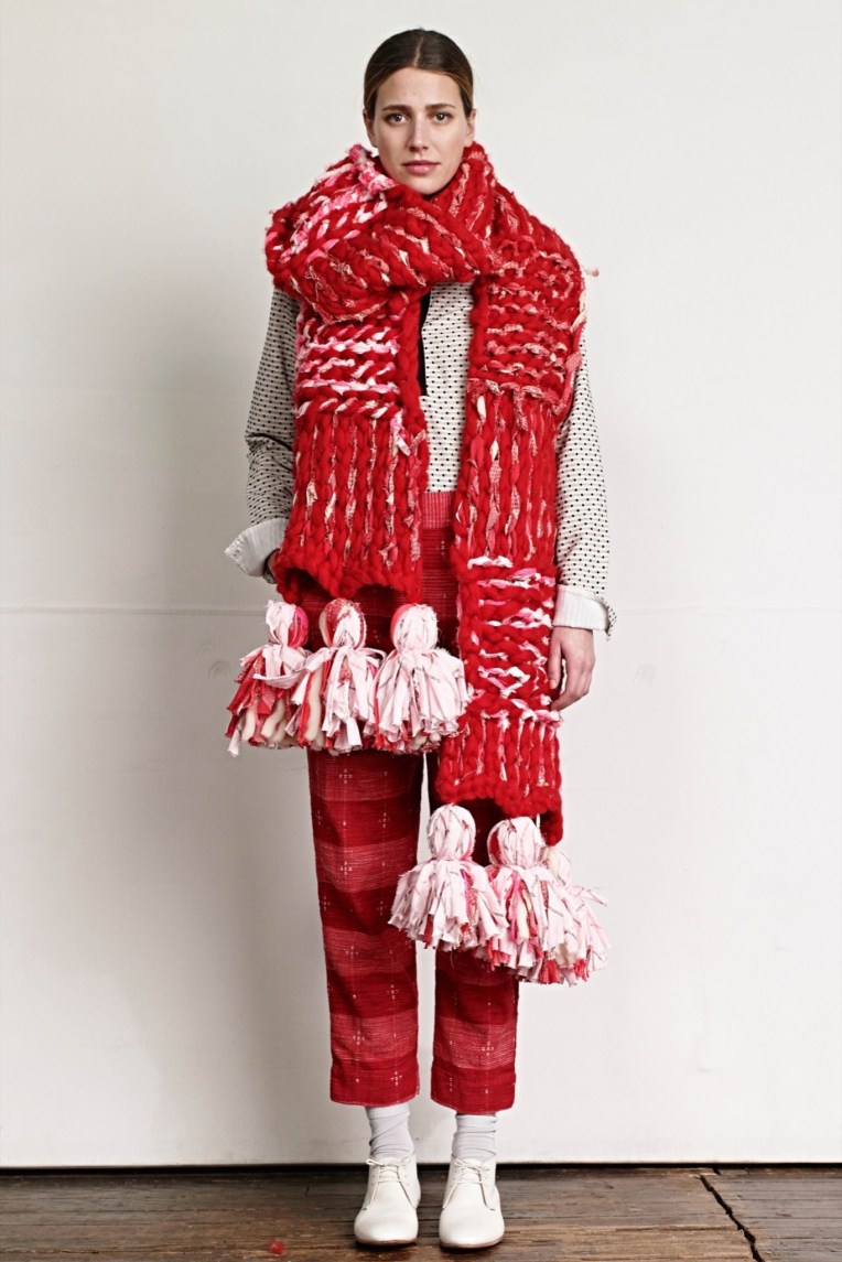 Ace & Jig is a brand which looks forward to artisanal threads and interesting textiles. For their AW15 collection, Cary and Jenna collaborated with Caroline Kaufman – bold, knitted scarves with pompons and chunky, fluffy cardigans were introduced, contrasting with delicate cottons. Also, over-sized skirts and coats appeared, creating a pilgrim-like mood, worn with these gorgeous hats. I am happy tis all-American label starts to have it’s signature style on fleek (yes, on FLEEK).