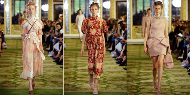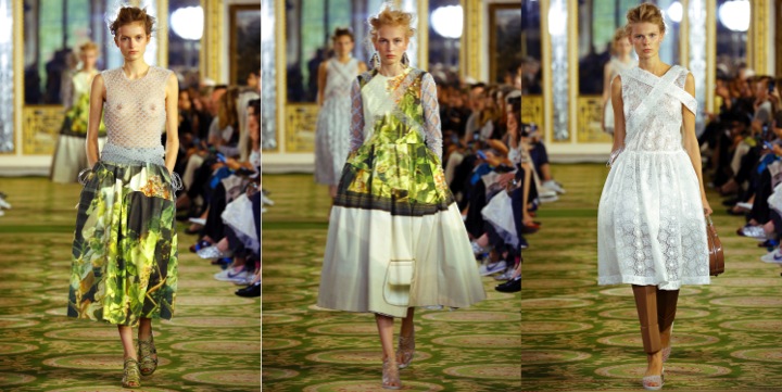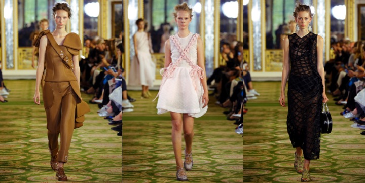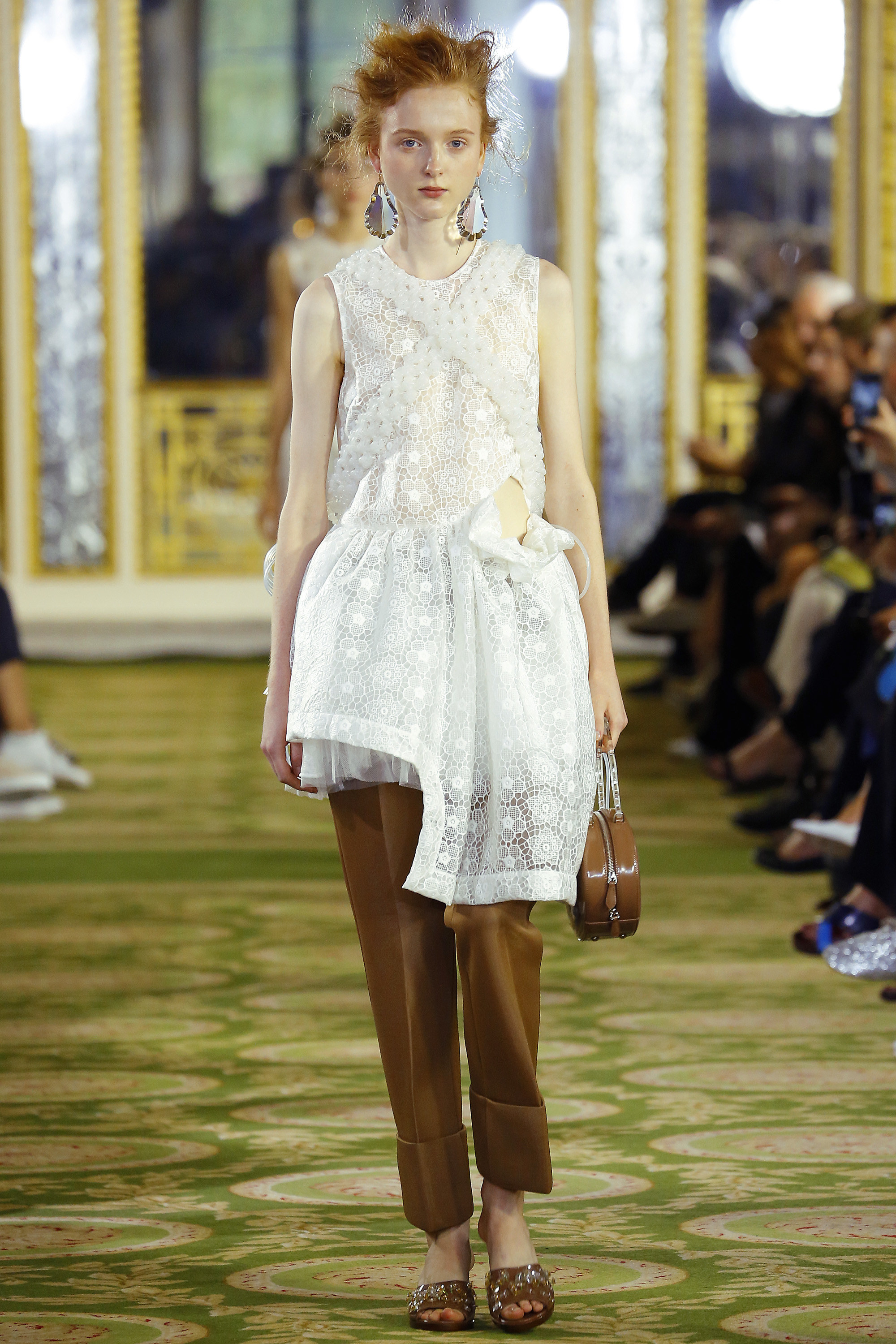 Spring-summer 2016 seems to be the most daring collection for Simone Rocha up to date. And not only because the show was staged in Buckingham Palace. This collection proved, that Simone Rocha is a designer who can freely play with her own signatures. The new season was all about blurring prettiness, tenderness and sexuality with traditional and high-tech techniques. Lace tops were styled with brown, neoprene trousers while the flip-flops and dresses were embroidered with crystals, which took the designer into a more couture level. But how did the collection and vision of presenting it in London’s most royal place appear in Rocha’s mind? “I found out I was pregnant while I was in Japan, working on a project with Dover Street Market Ginza, and then went on to Kyoto for a few days,” said Rocha. “I was suddenly seeing everything so intensely, it felt trippy!” Although the collection was not mainly about Japanese references, it had a lot to do with kimono silhouettes. But the main idea was deeply rooted in the history of British aristocracy – the ball-room gowns, pretty ruffles and the lady-like feeling.