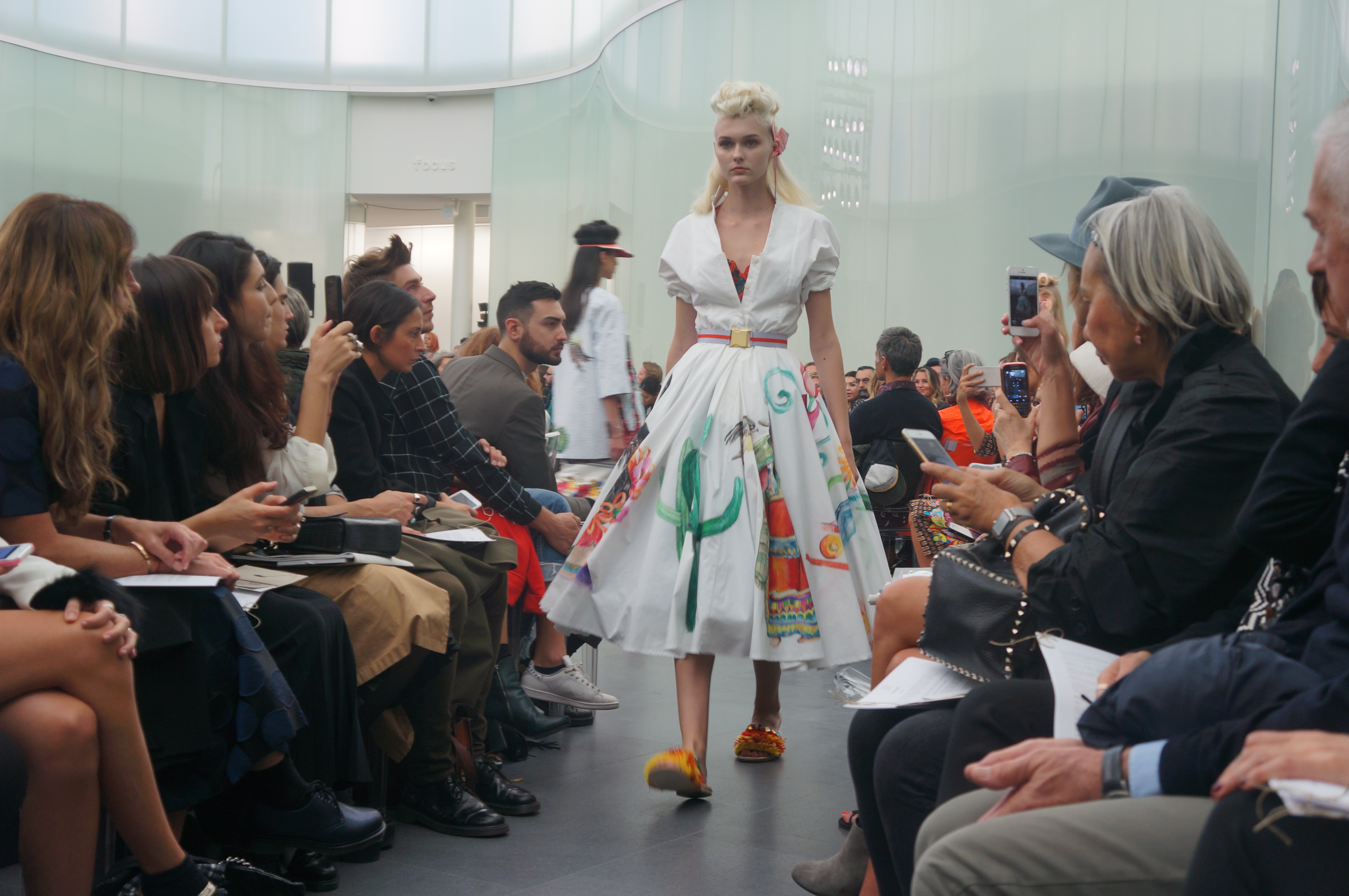 The ethnical beauty of the collection is contrasted by American varsity jackets and over-sized cowboy shirts, while trench coats and men’s formal striped shirts made a sign of London’s well-known Savile Row needle. However, it is worth to note that some of the fabrics were hand-made in Burkina Faso. Stella Jean and her SS16’s flowing dresses, boxy jackets and “amphora-like” skirts not only made a strong impression, but also felt very right for the current, migration conflict. The collection was like a melting-point of cultures, filled with beauty and creative freedom. Also, it proves that fashion can be politically important.