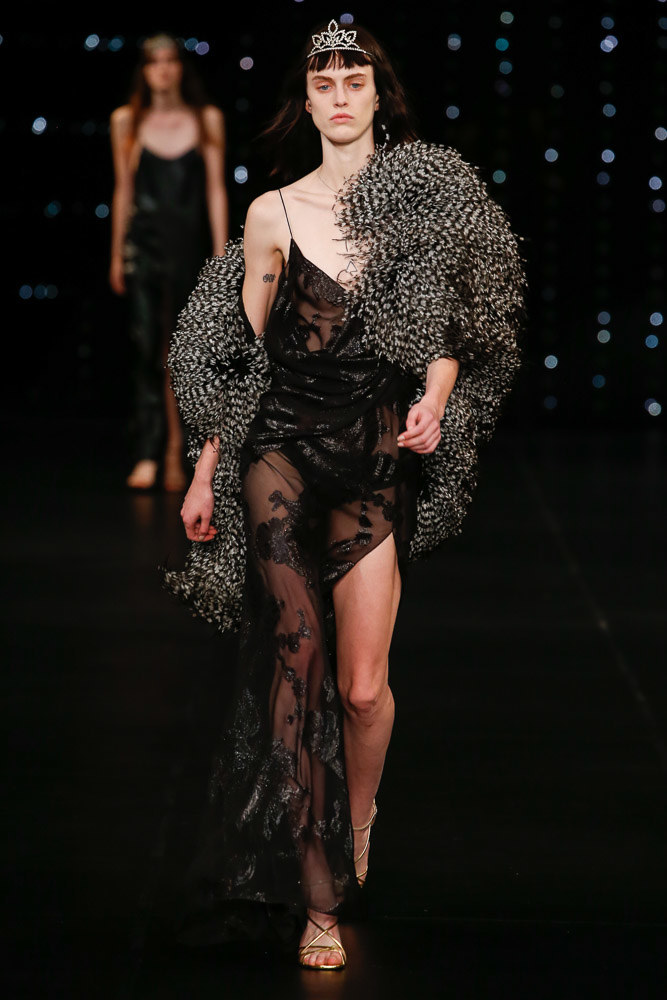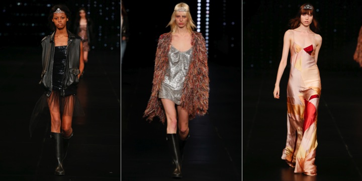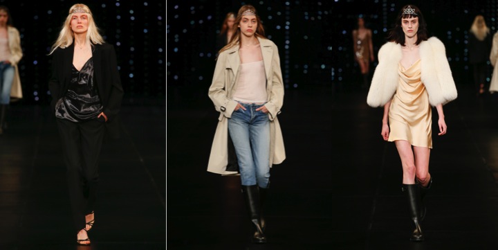 So, the SS16 collection is an explosion of smarmy eroticism – sheer slip-dresses, trashy fish-net tops and kitsch, gold sandals look tasteless and definitely not as expensive as they are. There is no big deal that the feather boa was made by the Parisian couture assistants, if it looks like a stolen prop from an opera. The tiaras don’t need any comment. And “free the nipple” moments were meant to be so “accidental”, that the overall effect felt pretentious and artificial. The solemn faces of models (and Agyness Deyn) just helped Hedi Slimane say out loud – “I am the designer at YSL and I really don’t care“. If everybody, except a few of critics and consciously thinking clients, adore this collection, then where is fashion heading off to? Hopefully not to a pair of basic jeans and an effing tank top.