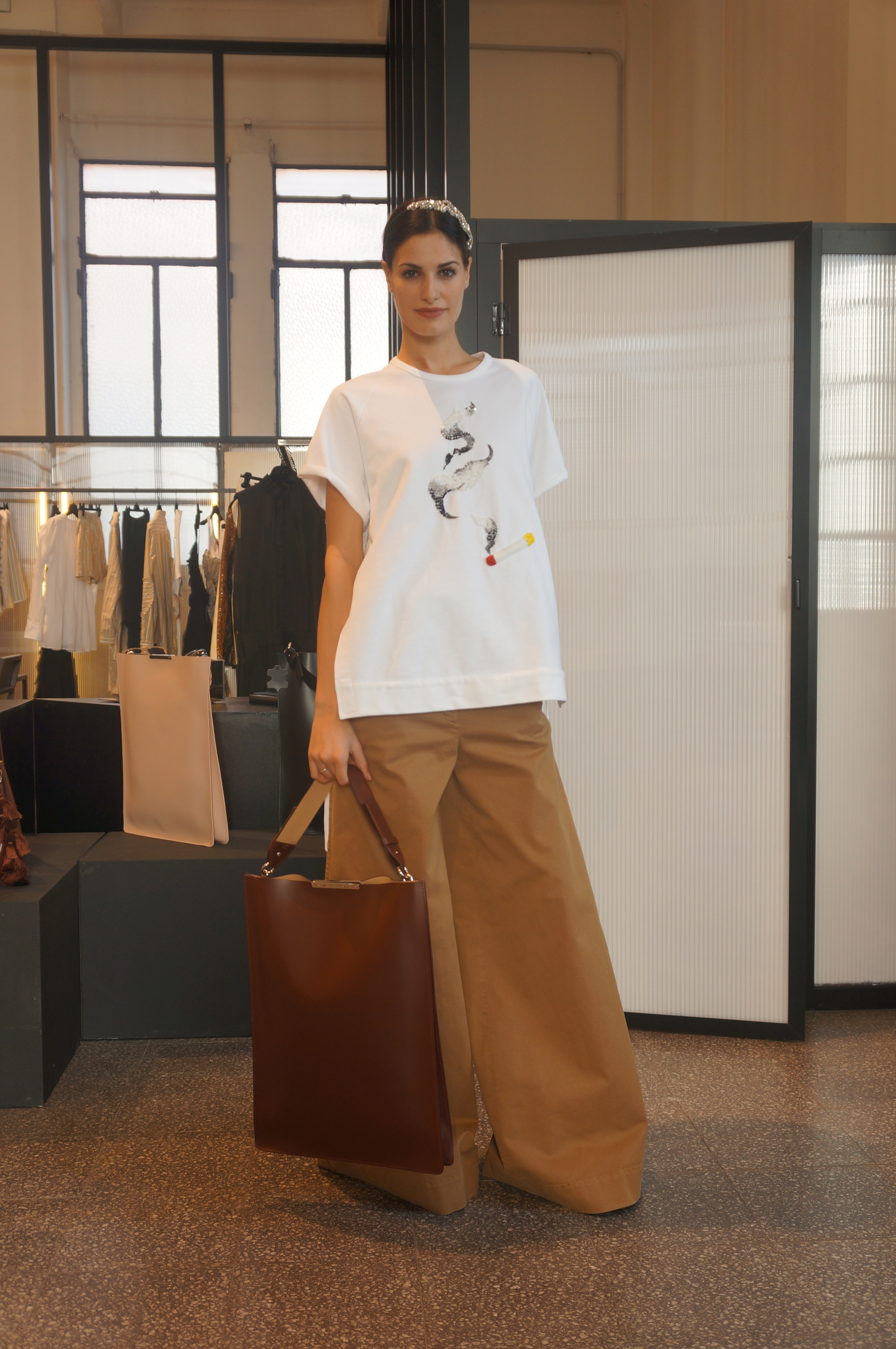 Beautiful moments from the No21 showroom, which presented their latest, spring-summer 2016 collection. I instantly fell in love with easy tank-top dresses that had white t-shirts under. Also, note the seductive and very chic cigarette prints on knitted tops and sweat-shirts. The cappuccino coloured denim flares gave a fresh air of French cool, looking off-duty with big, cabas totes. The tasseled, raffia sandals that have referenced to tribal Africa are killing it, just as the rest of the collection. As usual, Alessandro Dell’AcQua nailed it!