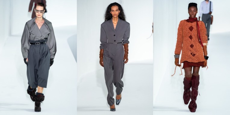 For autumn-winter 2019, Acne Studios’ designer, Jonny Johansson, considered what’s high fashion from the perspective of young people, and how it might change throughout time. “All the power dressing that I consider iconic womenswear, maybe they are attracted to it, but in a different way.” While doing the research, he also thoroughly examined Helmut Newton’s eternally chic photographs, and was amazed with the fact that those visuals are so relevant, and not getting old – even a day. All this gave birth to a collection, that’s quite different to Acne Studios we’ve seen in the last few seasons. Oversize pants were cinched at the waist and tucked into socks; coats had those refined-looking, rounded shoulders; draping, probably never seen at Acne before, looked sublime. The new season silhouette is sharp and chic, but there were also elements that felt distinct to the brand’s aesthetic: knits with raw finishings, eclectic jewellery (those XXL bracelets are gorgeous) and, other than the very seductive, Newton-ish pumps, heavy trekking boots. Worn with one of the statuesque blazers or a collared ‘office’ midi-dress, the elegant-slash-off-duty look would exactly be what Johansson worked on this time: power dressing, fitted for a contemporary woman.