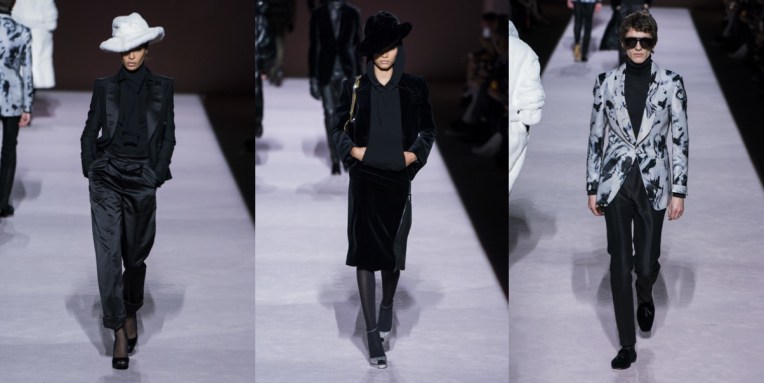 Hello, NYFW. New season is on, again. There’s no rest from fashion. But then, Tom Ford isn’t here for the newness. For autumn-winter 2019, the designer delivered what he does best: the 90s sleek we all know and used to love at his Gucci. Two specific looks – worn by Maria Carla Boscono and Gigi Hadid – were a straightforward reference to his iconic 1996 collection for the Italian house. The deep, cherry red velvet suit. The jersey column eveningwear from the 2019 outing was a remiscent of the gowns that closed the same collection back then (all-white, worn by Kate Moss and Amber Valletta). Other than that, Tom returned to his tailoring roots, reworking the codes he famously established. The grey horse-rider blazer was sublime, while the version in satin black looked more than relevant with a de luxe hoodie. Some looks were complemented with groovy faux fur hats, while others were styled with sparkgling stilettos. At the very same time, the Tom Ford man should own two looks: a velvet suit, kept in the most alluring shade of burgundy, and a suit in dove grey leather. That’s it.