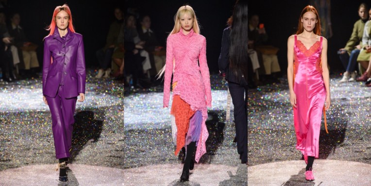 Seven seasons in, and Sies Marjan is one of New York fashion week’s most anticipated brands. The autumn-winter 2019 show was a moment, mainly because of the venue that looked like some sort of cosmic, or rather magical, space. The darkened setting brought a mysterious aura, while the floor, covered with millions of Swarovski crystals, was quite something. Are we on a crystal moon? A witch tent? The clothes were equally appealing with their gorgeous colour palette (Sander Lak‘s specialty) and charming allure. This season, the designer wondered about falling in love and having a relationship – with his brand. Relationships tend to fluctuate, and Lak realised that through working with colours and materials he usually tries to avoid. “I really challenged myself,” he said. “I was totally over neon, but I wanted this season to grab it again and see if I could make myself fall in love with it again. We used a lot of lace too, and I hate lace, I never liked lace. But I really liked the idea of how can I make myself fall in love with this thing that’s not something I organically go toward.” The result? A line-up of gorgeous eveningwear that’s feminine, yet not banal. The black dress – a first ever from Sies Marjan – was another unprecedented highlight. “Black is something I’m not comfortable with at all in clothes,” said Lak. “That was the hardest dress to make.” The pleated lamé number looked outstanding, even if the way to it was a struggle. But then, every relationship has its ups and downs.