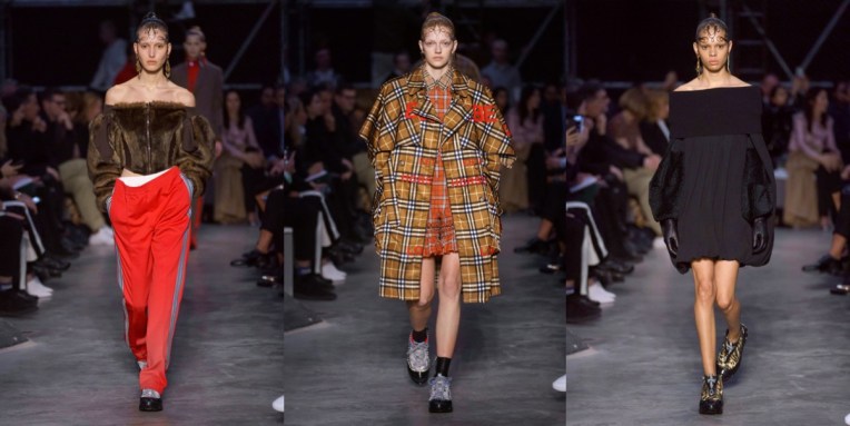 Riccardo Tisci’s second collection for Burberry left me with the same impression I had after his debut. Too much of content. Again, we’ve got an exhausting line-up of more than 100 looks and some sort of separated themes that relate to British culture. Guests sat in two spaces: one very formal with a 90s rave soundtrack, the other an urban jungle set to the sounds of classical piano. The collection was a matching game of contrasts between street and elegance. While Tisci wants to get as democratic and inclusive with his fashion as possible, it seems like the huge scope of Britishness is just too much for one collection. The second part of the collection, the formal one, was the strongest: we’ve had sharp tailoring, gorgeous, distinctly Burberry trench coats, refined eveningwear. The oyster print was properly posh, while the colour palette – Burb beige and pistachio – looked insanely good. Stella Tennant in a camel total look and a matching beanie was just it. The first part of the collection, the one that’s targeted for younger audience, was like a deja vu from Riccardo’s later Givenchy years, when he went full throttle with printed T-shirts and sweatshirts. Yes, those were bestsellers, but… we’re in 2019. That mould of tartan plaid, Burberry checks, puffers and logos wasn’t neither clubbing fashion, punk or anything close to that. Rather, millennials-minded mumble jumble of references.
