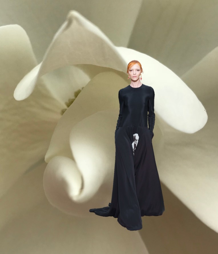 Pierpaolo Piccioli makes people get emotional (and Celine Dion shed tears of joy) over his couture. Does his ready-to-wear for Valentino spark the same reactions? Pretty much yes. His autumn-winter 2019 collection was an ode to love. A theme that might be so easily clichéd in fashion got beautifully poetic on Piccioli’s runway. “I feel that people are looking for emotion and dreams—but not distant dreams,” he said today before the show. “I want to create a community for Valentino. I mean something different from ‘lifestyle,’ which is about owing objects. It’s about people who share values.” Valentino’s community has many faces, and this season Pierpaolo made them even more vocal. First, the choice of models who walk the Valentino runway as of late utterly cement the normalisation of inclusive casting. You’ve got Adut Akech open the show in a voluminous coat, and Maria Carla Boscono wear a gorgeous black gown. Then, we’ve got artistic individuals that leave their mark on Piccioli’s fashion. Jun Takahashi of Undercover started collaborating with Valentino’s menswear last season, and his contribution goes on here as well. This time the designers morphed together a print of a 19th-century neoclassical sculpture of kissing lovers with an image of roses. It appeared on pretty much everything, and wasn’t necessarily a subtle detail. And then there are the poets. Poetry in fashion always seemed to be a good idea just in case of Ann Demeulemeester and her long-time friend, Patti Smith. In case of Valentino, the concept wasn’t overly intellectual or profound, but digestible for the eye. Picciolli commissioned the Scottish poet and artist Robert Montgomery and the three young writers – Greta Bellamacina, Mustafa The Poet and Yrsa Daley-Ward – to contribute to a slim volume, Valentino on Love, which was left on seats for the audience. An illuminated billboard with lines by Montgomery stood at the end of the runway, reading, “The people you love become ghosts inside of you and like this you keep them alive.” The words carried on to live in Piccioli’s designs and the lines were printed (or embroidered) inside coats, tulle dresses, inside of bags and boots. In terms of fashion, this was a line-up of incredible matchings. An orange jacket with feathers was worn over a hoodie – refined, yet fresh. There were as many couture-ish silhouettes (like the yellow cape-coat or the finale dresses) as sublime daywear (think soft tailoring, flared mid-lenght skirts and classical little black dresses). Love’s in the air, in every single aspect.