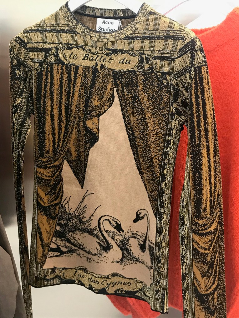Acne Studios tobacco crewneck, long-sleeved knit with a historical Le Ballet du Lac des Cygnes (‘Swan Lake’) poster print. I’m just so, so in love with the brand’s ballet-inspired spring-summer 2019 collection.
