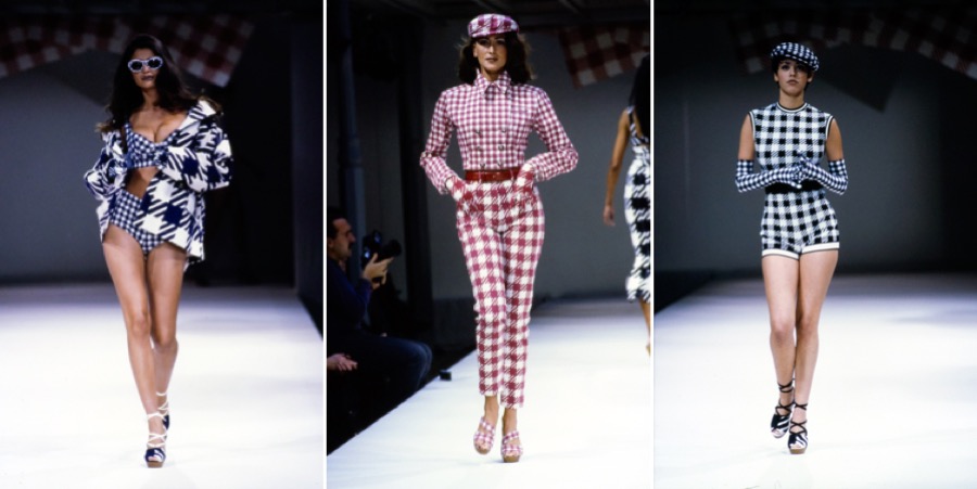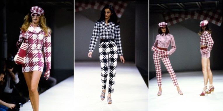 Azzedine Alaïa’s curiosity for exploring all things new and unique is legendary. His wide-ranging interests in art, architecture, music, and global cultures would often bring forward new and unexpected insights into both contemporary dialogue and the tempo of the times. Fashion and art always influenced his approach to couture. So it was not unusual that in 1991, art once again opened another path, expanding the world of Azzedine’s fashion. As always, his eye saw the pulse of the times. Inspired by his friend Julian Schnabel’s paintings, Alaïa was the first to take couture to the street. “It happened thanks to my friend Julian Schnabel, he wanted to make paintings with the vichy check fabric that was in fact the signature emblem of Tati”. Alaïa’s spontaneous and fresh approach to fashion led him to create what would later become a marketing model – collaborations between high fashion and street fashion – appearing for the first time on the Alaïa runway with the Tati collection. As he would later say when asked about the iconic spring-summer 1991 outing, “with Tati I learned many things, another way to look at fashion”. He used the trademark pink and white vichy check print fabric of the popular shopping store TATI, where every day Parisians would hunt for the best bargains. The history of the TATI stores was a part of Paris, part of the life of the city, and a part of his own journey from Tunisia through the working class neighborhoods where the TATI checked pattern could be seen. To join his world of Parisian couture with the streets of Paris was his pride. He would add the black and white and the blue and white patterns, something new for Tati, exclusive to the Alaïa collection, and he would offer his designs to customers at the lowest price in a small collection consisting of a bag, a T shirt, and a pair of espadrilles to be sold at TATI stores. Oh, Alaïa…
