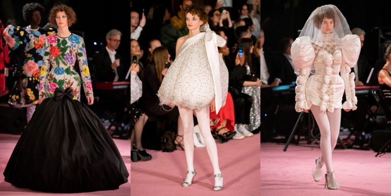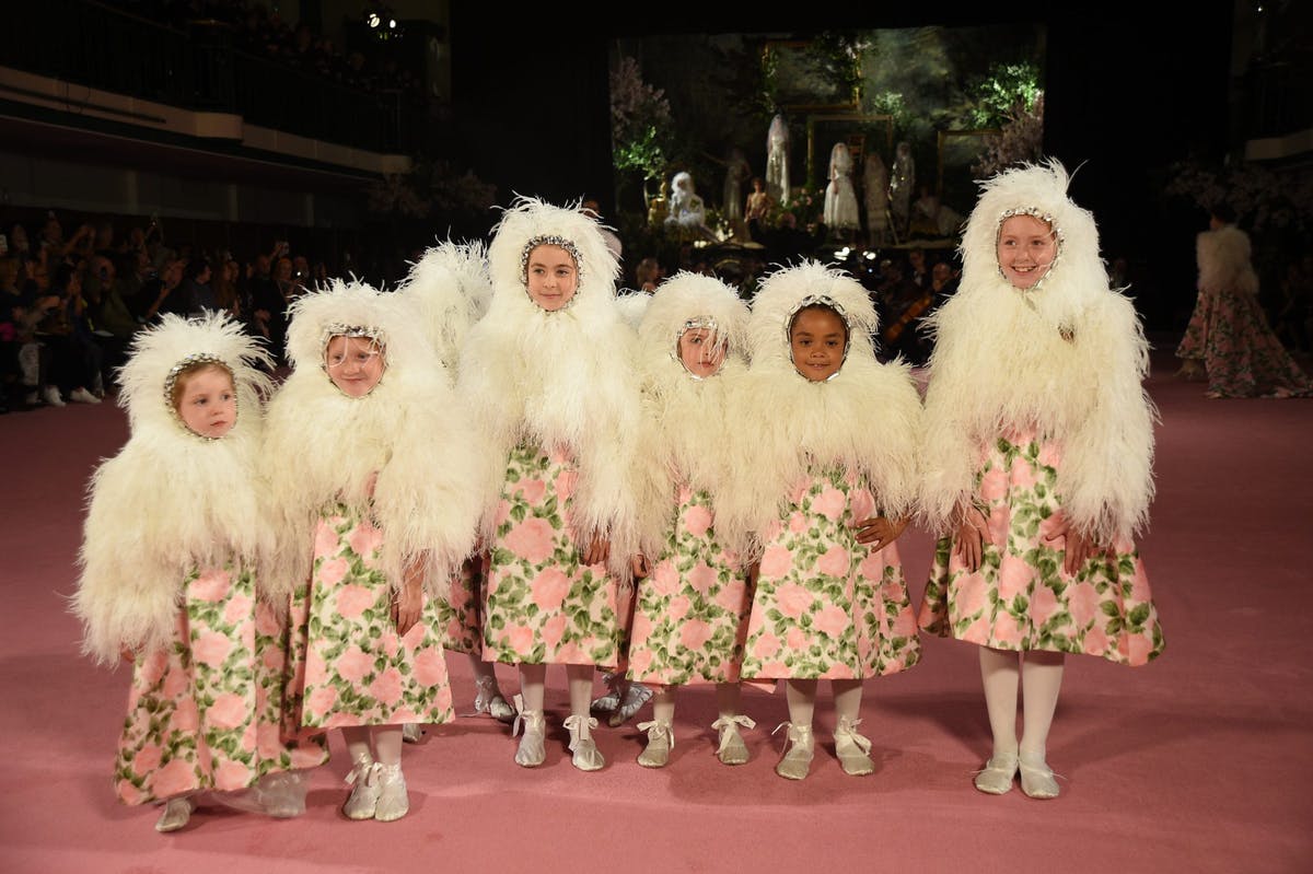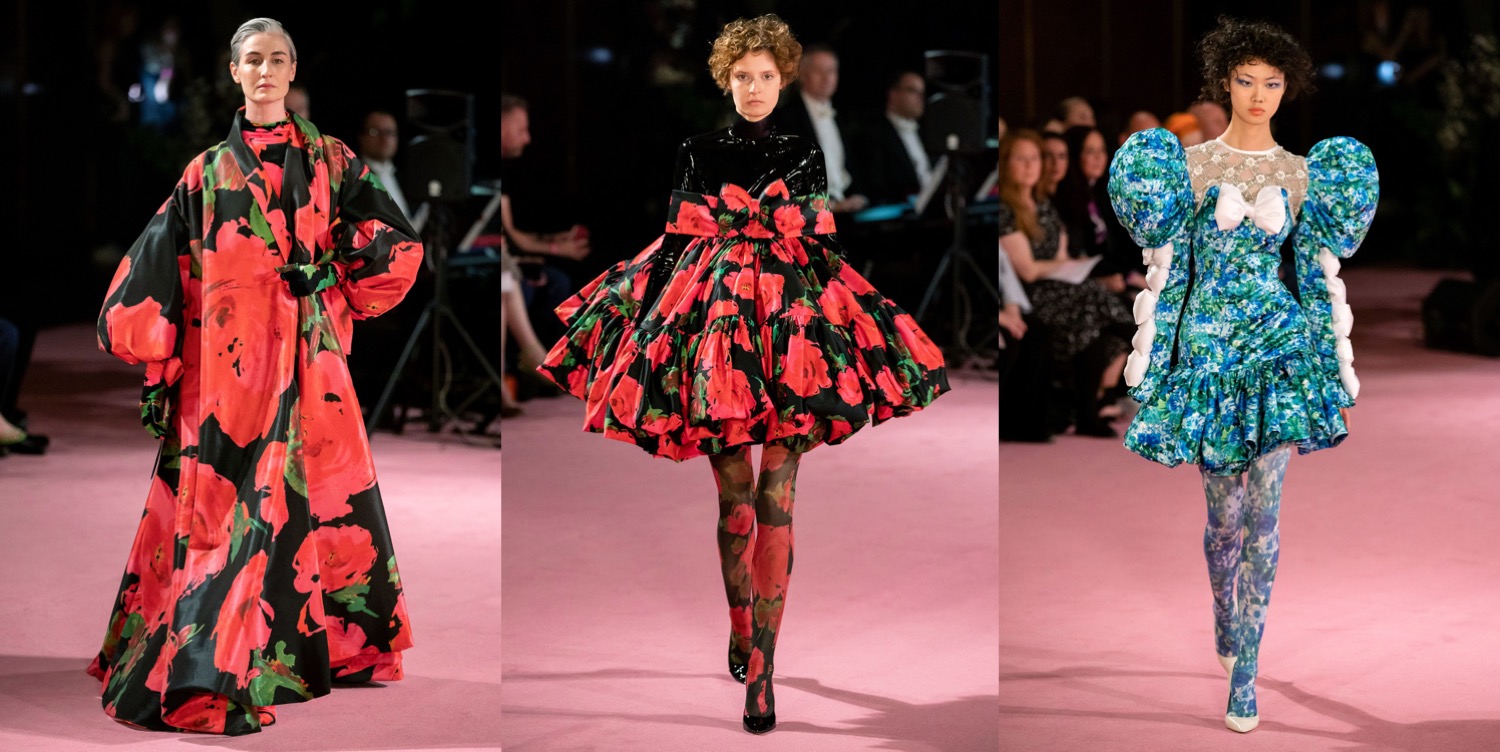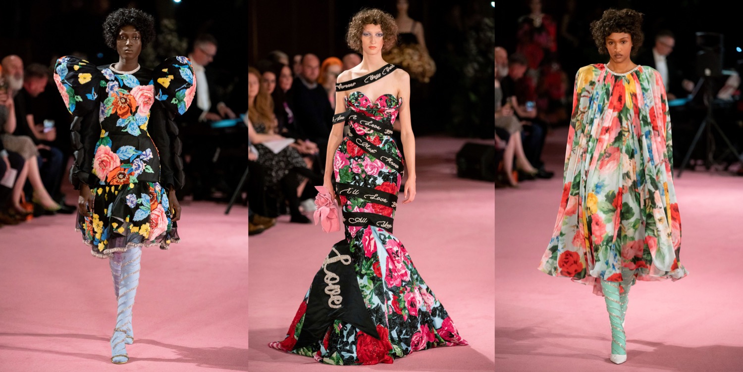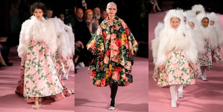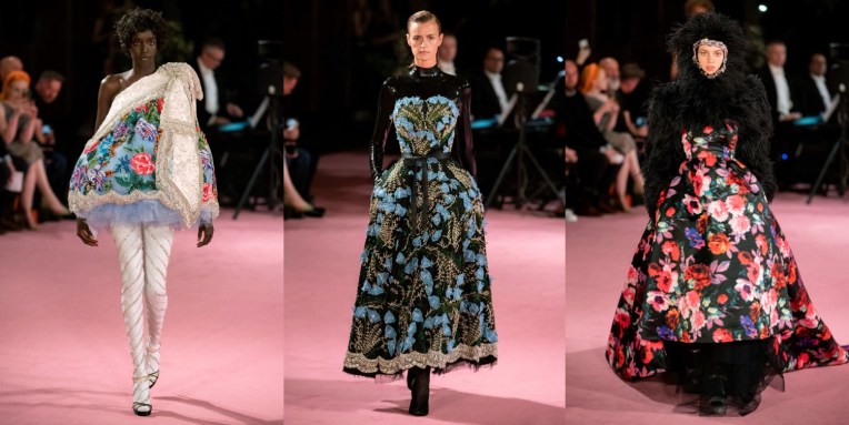 Richard Quinn‘s spring-summer 2020 collection was LFW’s theatrical finale that consisted of extremely dramatic gowns, Erin O’Connor’s appearance, and even more of signature floral prints the designer is so loved for. Quinn’s show also featured a gaggle of schoolgirls adorned in fantastical white feathers. The baby-birds walked the runway alongside a matching bridal look (Richard’s new venture) at the show’s close. The designer’s aim was for the show to be “a fashion sanctuary, where we can all come and celebrate”. While majority of the looks felt like a grand déjà vu of his previous collections, the entire spectacle was impressive. But then, do we need constant newness from designers like Quinn, who already have their well-established style and continue to thrive?