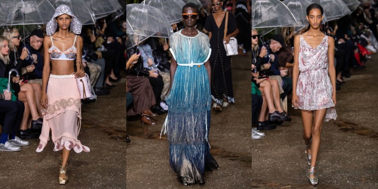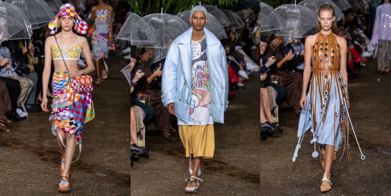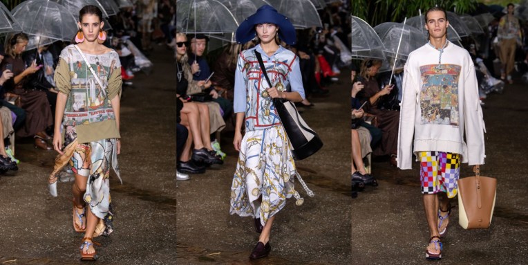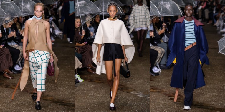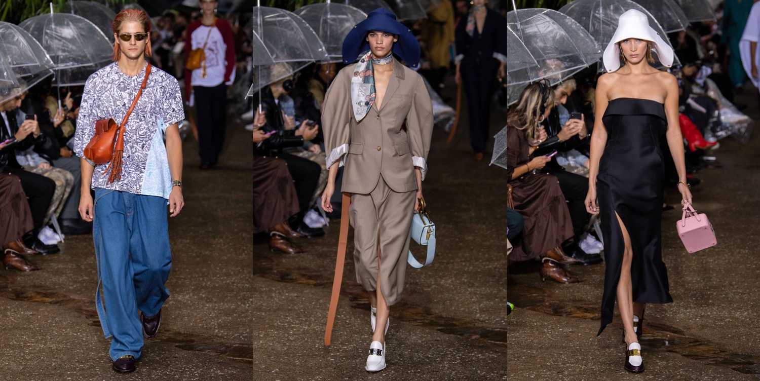 It’s Bruno Sialelli‘s second season at Lanvin. And it’s really not the easiest maison to design for, especially after the so idiosyncratic Alber Elbaz era and the last couple of turbulent years related to the label’s ownership and direction. And add up to all this Jeanne Lanvin, the founder of the brand, who left behind a vast archive. Before Lanvin, Sialelli was one of the designers at Jonathan Anderson’s Loewe. His debut collection was mildly received (quite wrongly – the new arrivals coming to Lanvin’s e-shop are gorgeous, take a look!), because the designer still had the Loewe mentality, soft for artistically random, crafty details. This hasn’t changed for spring-summer 2020. Not only the weather wasn’t in favour of Sialelli’s line-up, but also the lack of edit. A bit of tailoring, a bit of flou. A print inspired by comic stories, multi-coloured checks, more comics. Some unflattering leather-works that were put over frocks and skirts. The mini-dresses in the finale were absolutely whatever. The strongest point of the collection was the pleated, fluoroscent blue gown that felt every, very Jeanne Lanvin. This is a good path to follow. I bet the details of this collection were great as well, but they are just too small to catch for a runway show. While an eclectic, “curated” look works at Loewe, Lanvin needs something different. Big hopes Bruno finds it sooner or later.