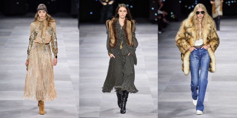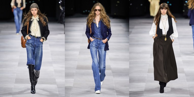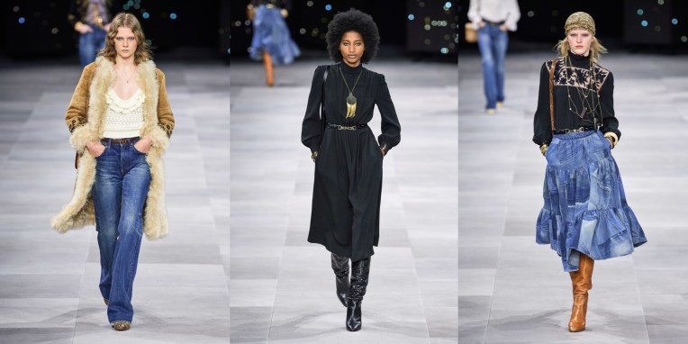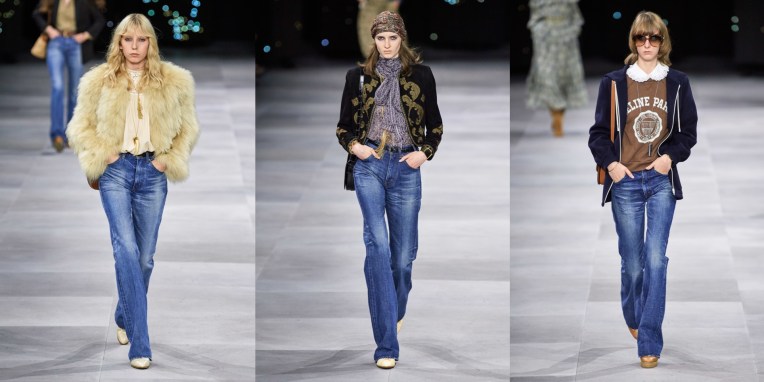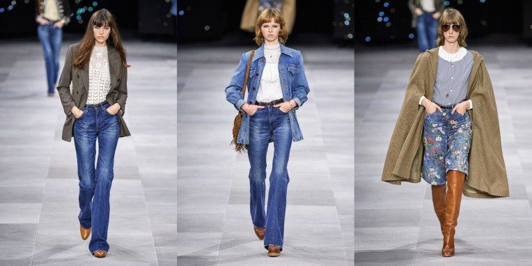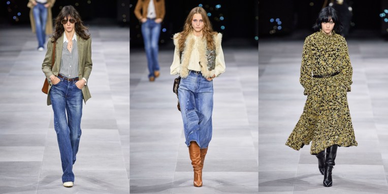 Last season, Hedi Slimane‘s Celine was about the Parisian, bourgeois woman. For spring-summer 2020, it’s about her daughter, who wears nothing else but denim, dreams of Woodstock and eventually takes part in street protests. But still, she’s bourgeois, no matter how she tries to rebel. Slimane doesn’t overstrain himself. His collection is again a 1:1 version of Celine’s 1970s archives, with a bit more of slouchiness and the presence of Yves Saint Laurent turbans (and, oops, it seems that Anthony Vaccarello pulled them off as well at Saint Laurent – the two brands are dangerously the same this season). While fashion drowns in nostalgia, there are designers who interpret the past in a fresh way – take Marc Jacobs or Paco Rabanne‘s Julien Dossena for SS20. In case of Hedi, noting how masterful he is in rebranding and shaking things up in the most of frustrating ways, it’s laziness. And confidence that anything will sell. Well. It will. Those denim culottes, fur coats and peasant dresses are destined to sell well, because they are easy, undemanding and chic. And, comparing to Vaccarello’s Saint Laurent, not so revealing. One more thing. Here’s to the Philophiles: there are parallers between Phoebe Philo’s Céline and Hedi Slimane’s Celine. Actually, Philo was really good at the bourgeois style, even though nobody noticed that at the time. Her swan song collection is the best example. But while Phoebe’s take on Parisian bourgeois aesthetic was modern, comfortable, unobvious and less strict, Hedi is literal. And there’s nothing noble about doing things in a literal way.