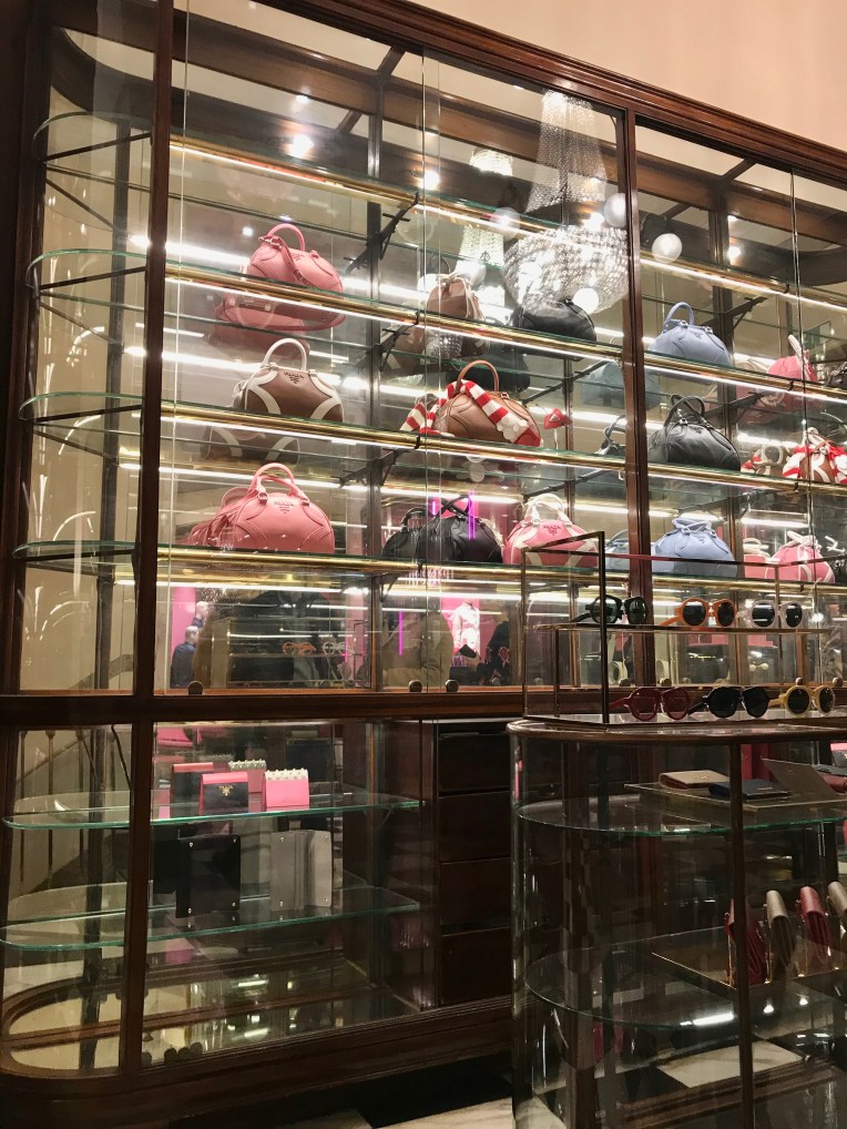 When in Milan, Prada, the word, the universe, takes a whole another dimension. It’s not just Miuccia Prada’s sophisticated, multi-faceted fashion, but also art. And sweets. Here you can choose between various Prada delights. Maybe the embellished red heels available at the label’s oldest flagship in Galleria Vittorio Emanuele II? Or the delicious donuts filled with vanilla cream… or the pastel-pink marzipan cake from the brand-owned Marchesi 1824 patisserie on Via Monte Napoleone? Hard to resist any of that.