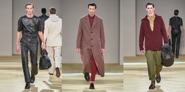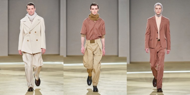 The only thing I disliked about Salvatore Ferragamo’s autumn-winter 2020 for men was the ‘millenials’ talk – isn’t using this marketing term slightly outdated? Still, Paul Andrew’s collection was really good. The peculiar way young guys address masculine archetypes was apparently revealing for him. “Millennials break down archetypal references, mixing them into new categories that defy categorization,” Andrew said. He identified six different alpha-male paradigms of masculinity: the businessman, sailor, surfer, race car driver, soldier and biker. These served as canvas to create new masculine style species, mixed together into a freeform hybrid. “Once upon a time, men identified more clearly with these categories,” said Andrew. “If a surfer wanted to go to Wall Street, he surely didn’t know what to wear. Today you might be easily wearing surfer-style pants with a tailored jacket.” Maybe that’s a bit of an exaggeration. Still, he has a point. If you sum up a sailor & businessman archetype, what do you get? Answer: A perfectly tailored peacoat in the finest herringbone Scottish tweed. If you’d like to add a bit of your inner 1980s California surfer to the mix, you’ll wear a matching pair of oversized shorts over the trousers of an impeccably tailored pinstriped suit, a three-piece extravaganza fit for a new breed of businessman & ocean man. Or else, the soldier & surfer combo could result in a daring twist on the camouflage pattern, inspired by a Hawaiian shirt and reworked in military colors. Probably, less words would work even better for this inventive line-up.