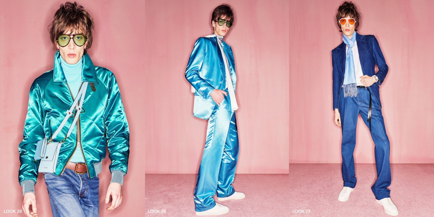 As told by Tom Ford’s team at his Milan showroom, when the designer was making his name at Gucci in the latter-half of the 1990s, he had a routine when it came to pants. Apparently Ford would loop a strip of leather through the two front belt-loops either side of his fly and knot them to ensure a just-so fit. For autumn-winter 2020, Ford offers his pant-tie – now called an Obi – that was incorporated into the kicky iron-creased pants that accompanied his attractive jackets. The looks is non-chalant, yet at ease. These suits came in a multitude of hues and fabrications – like gently washed denim or the incredible lilac satin(or the Madonna-Gucci-shirt-blue!). When shorn of a matching jacket the pant shape in denim looked as if taken straight from the 90s. Summing up, Ford’s wardrobe is super hot this season.