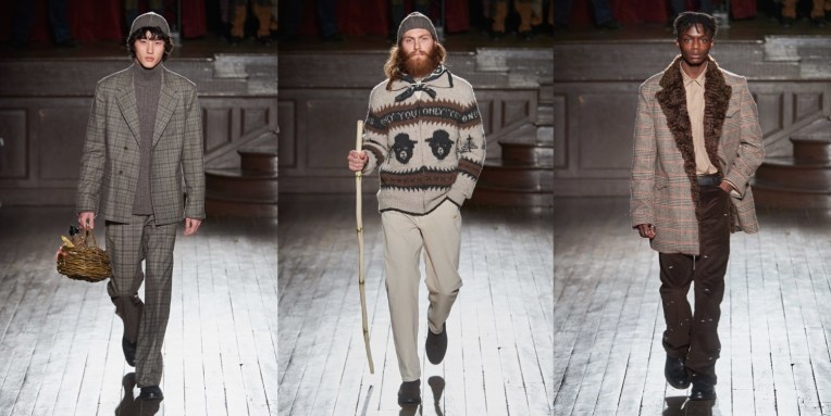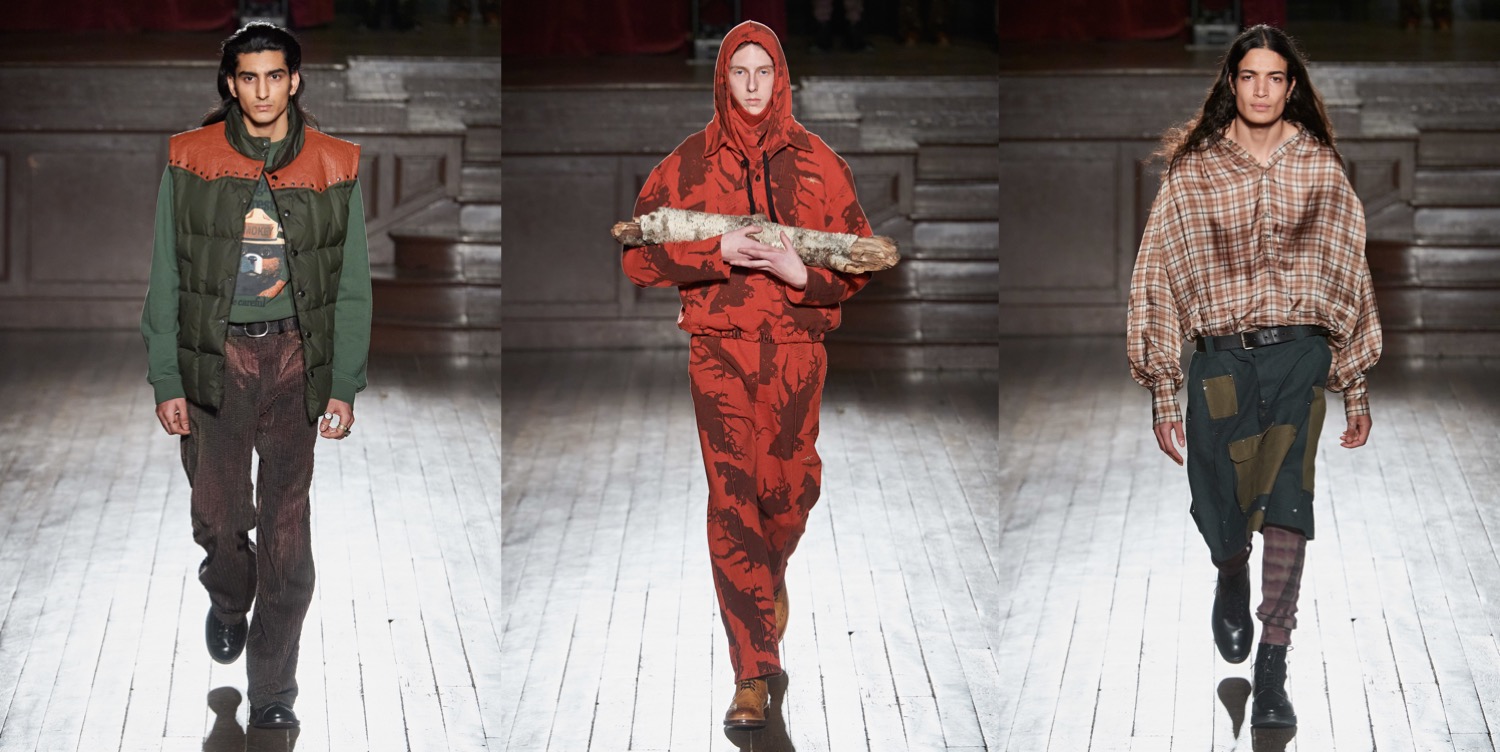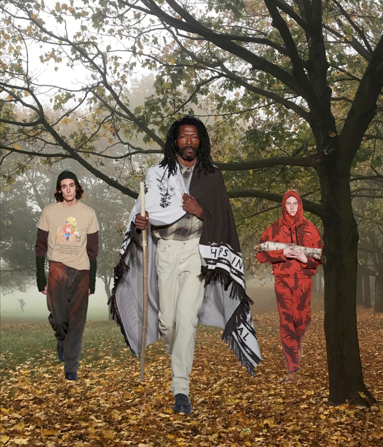 The American brand named Phipps might not be the most “Parisian” and “fashion” of them all. But Spencer Phipps seems not to care. More importantly, since starting his label few years ago, he has been seriously devoted to sustainability (before it was “thing” for the industry). This season’s “Treehugger: Tales of the Forest” collection caught everyone by surprise with a collaboration that has to be Smokey Bear. Even the authorities at the U.S. Forest Service were perplexed at first, the designer said. But once the deal was signed, Phipps had decades of archives to riff on: Smokey turned 75 last year. Despite teen-camping nostalgia and authentic lumberjack style – one of the models was, in fact, a lumberjack! – the designer noted that this collection was “a big step up in terms of luxury.” Placing a concern for nature within the luxury space is a serious challenge. To get there, Phipps said he tried to focus on suiting in a very smart way, sourcing cloth in northern England and paying close attention to details such as linings and buttons. He also used Steiff (the teddy bear brand) materials for sweatshirts and embellishment. “It’s biodegradable, very artisanal, and it has a luxury appeal,” he mentioned. “It’s not faux fur made from plastics. It’s a more traditional way of working.” Another favourite: the forest shaman spirit behind the huge blankets worn as shawls and whimsy, wooden “accessories”. Phipps’ commitment to slow fashion also prompted him to introduce what he’s calling his “gold label” – a range of curated vintage pieces, embellished and elevated to “treasure items” with a stylized gold star or forest ranger patches. That studied mashup included market-found jeans and flannels, heirloom pieces, and even a pair of jeans Phipps’s mom made back in the 1970s. “I’m just focusing on the lifestyle of sustainability. I’m not making you a new plaid shirt because there are so many out there already, and they’re beautiful,” the designer said. If only the big brands got the memo…