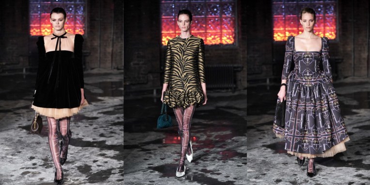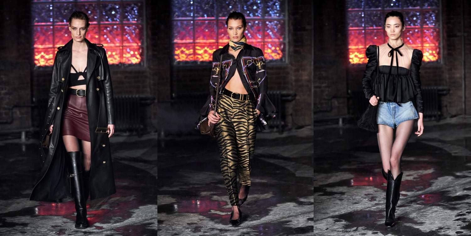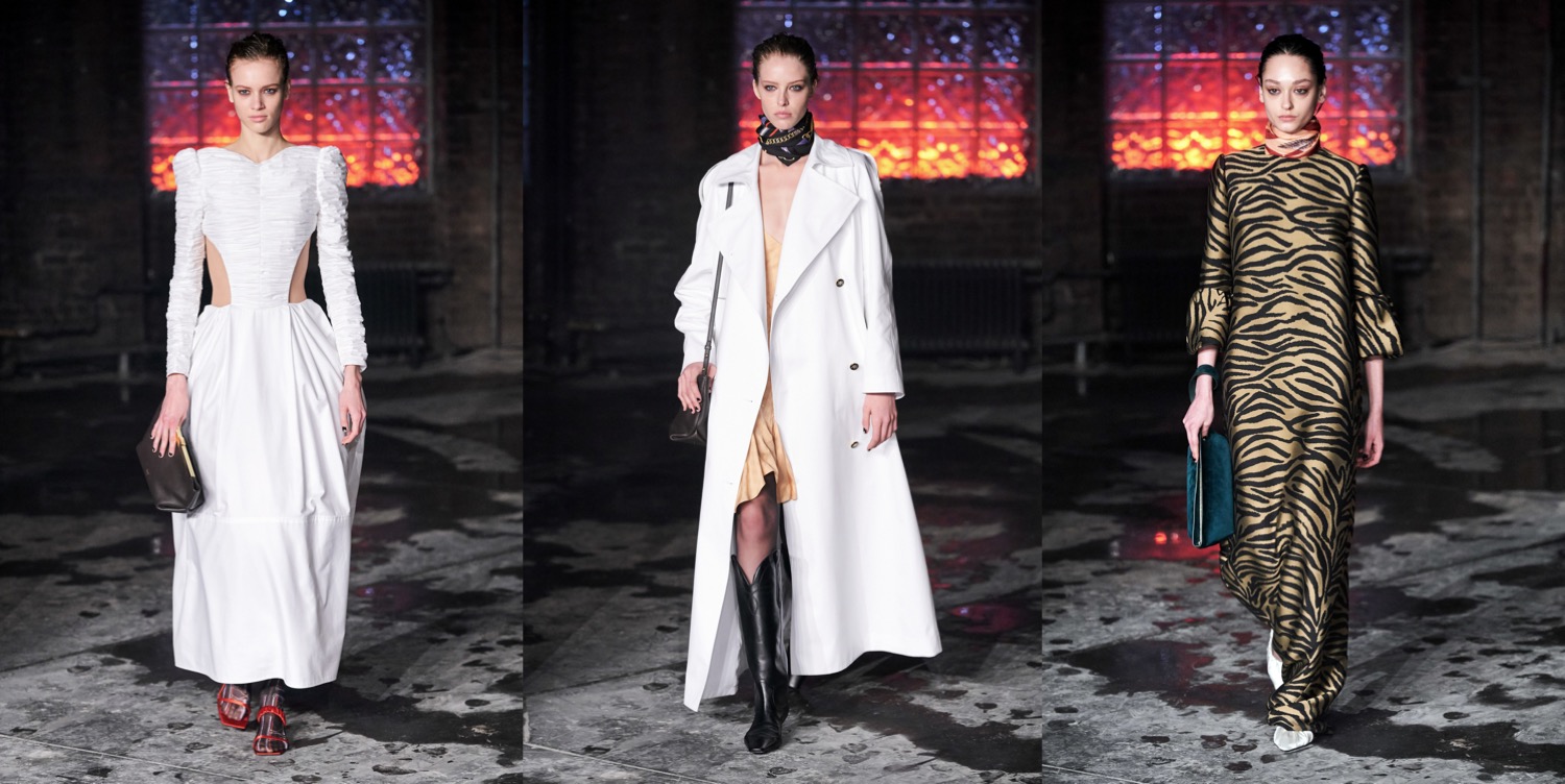 Cate Holstein’s Khaite had a similar turn as the boys at Proenza Schouler. Her woman is much more daring than usual this season. While many know and love the label for its soft minimalism, occasionally beautified by tulle and pearls and toughened by suede cowboy details, this time Holstein let some danger in. The effects? Some of it is convicing, some got lost in the messy styling. The designer wanted to embrace the word „sexy”: dramatic cut-out backs of the evening dresses, leather and cheeth prints went with signature tulle, vintage-looking horse-rider motif came across the silks. Models wore chunky knitted scarves or bandanas. Girls just wanna have fun.
