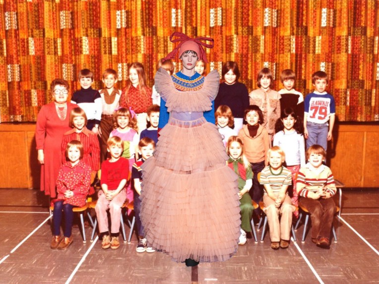 Freeing your inner child through fashion began this season at Alessandro Michele’s Gucci menswear and recently has also appeared at one of my favourite labels in London – Molly Goddard. In lieu of a press release, Goddard sent out a throwback London street style photo as the explainer for her new collection. First published in Fruits, the cult Japanese magazine, back in 1992, the image features just the kind of cool-looking dad and daughter duo you’d expect find on bohemian Portobello Road: him in distressed denim-on-denim and a baker boy hat, his insanely cute sidekick dressed in a tiny ruffled skirt over jeans and a chunky knit sweater. “The little girl is me!” said Goddard backstage at the autumn-winter 2020 show. “I remember those times growing up in Notting Hill so fondly, and really wanting to get dressed up for the market and all the characters who lived there.” In this joyful line-up, you could trace the influence of her toddler self, starting with an exploding blue taffeta dress that was layered over a salmon pink cardigan and worn with chunky creepers, then topped off with a beanie hat that was topped with a giant bow (the accessory of the season is here!). Then, things got even better: Molly’s signature tulle dresses in crayon kept on growing in size, while her sense of layering made it all look somehow… wearable. Goddard showed menswear for the first time this season, largely inspired by her musician-turned-fashion-PR boyfriend Tom Shickle. “He always moans that there’s nothing for him to wear, so I made a suit,” said Goddard, laughing. The retro-leaning checkered tailoring she created had a nerdy sway about it, something you could imagine Jarvis Cocker might have worn in the 1990s. One of these Fair Isle cardigans, please!