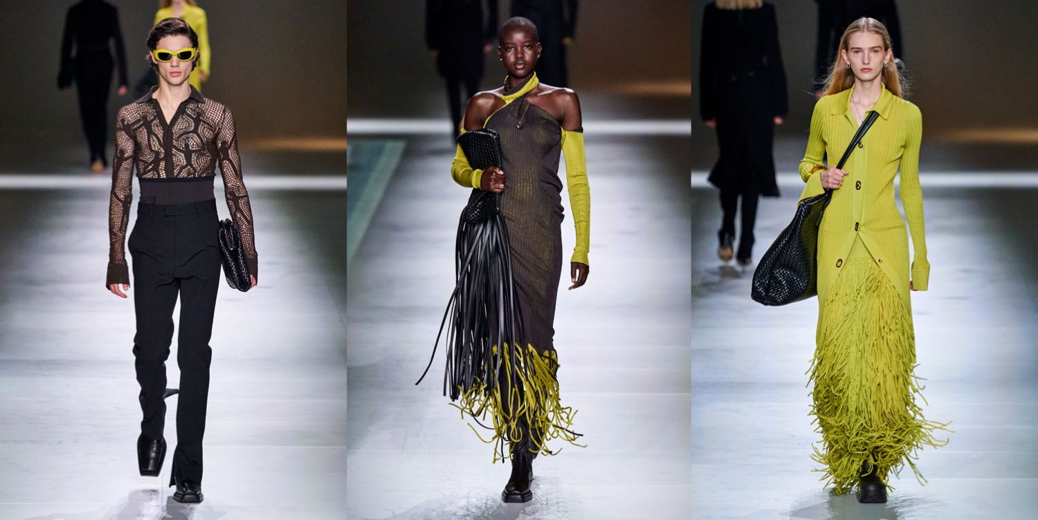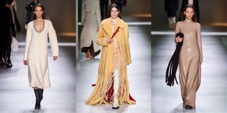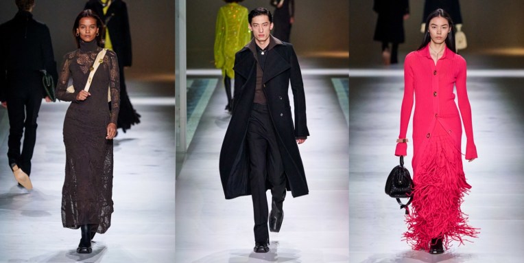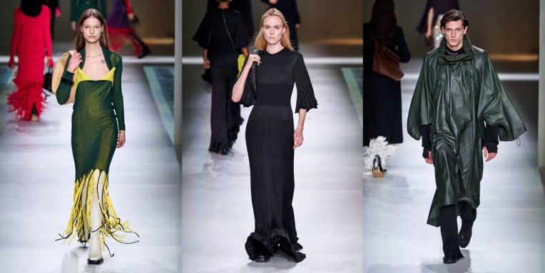 With today’s breaking news of Raf Simons co-designing Prada with Miuccia Prada (!!!!!) since next season, Daniel Lee‘s Bottega Veneta might not have that much attention it had for a while in Milan this coming September. Still, Lee evidently tries to win with the mainstream hype that started to abruptly surround the brand he shook up, and tries risky things. Painful colour combinations that look so bad they’re actually good. Volume plays that aren’t the easiest to pull off. Accessories which are distant to regular “it” bags and “it” shoes (fringed octopus clutches, rubber boots in neons). I’m aware that the audience’s memory span is too small for noticing all the Phoebe Philo and Céline references (really, every single look reminded me of a specific collection – and especially Philo’s now iconic swan song line-up, which was also the last for Daniel), so no surprise the collection’s edginess is this electrifying. For autumn-winter 2020, Lee decided to examine softness – something he has missed in his debut last year. “When you look at the brand’s beginnings, everything it made was so soft. I find that super inspiring.” That thinking informed the ready-to-wear he put on the runway. But equally, so did the fact that at the age of 34, Lee is part of the street wear generation that’s wearing trainers, sweatshirts with prints and any piece of clothing that puts an emphasis on cool and comfort. He asked himself, “How do we put ourselves together in a considered, elegant way but still feel comfortable?”. His answer was simple: stretch. Even the refined men’s tailoring was built with stretch in it, he said, so it moves with the wearer. He also put big emphasis on both knit dressing and jersey, for both day and evening. Movement is his other obsession. He said he’s been spending a lot of time at La Scala watching dance performances; he likes all kinds, from ballet to modern. No wonder why those sequinned maxi-dresses and coats with floor-sweaping XXL-fringes look so amazingly vibrant and energetic once they are worn and presented in motion. Expect this collection to sell out within hours once the pieces arrive to the stores.